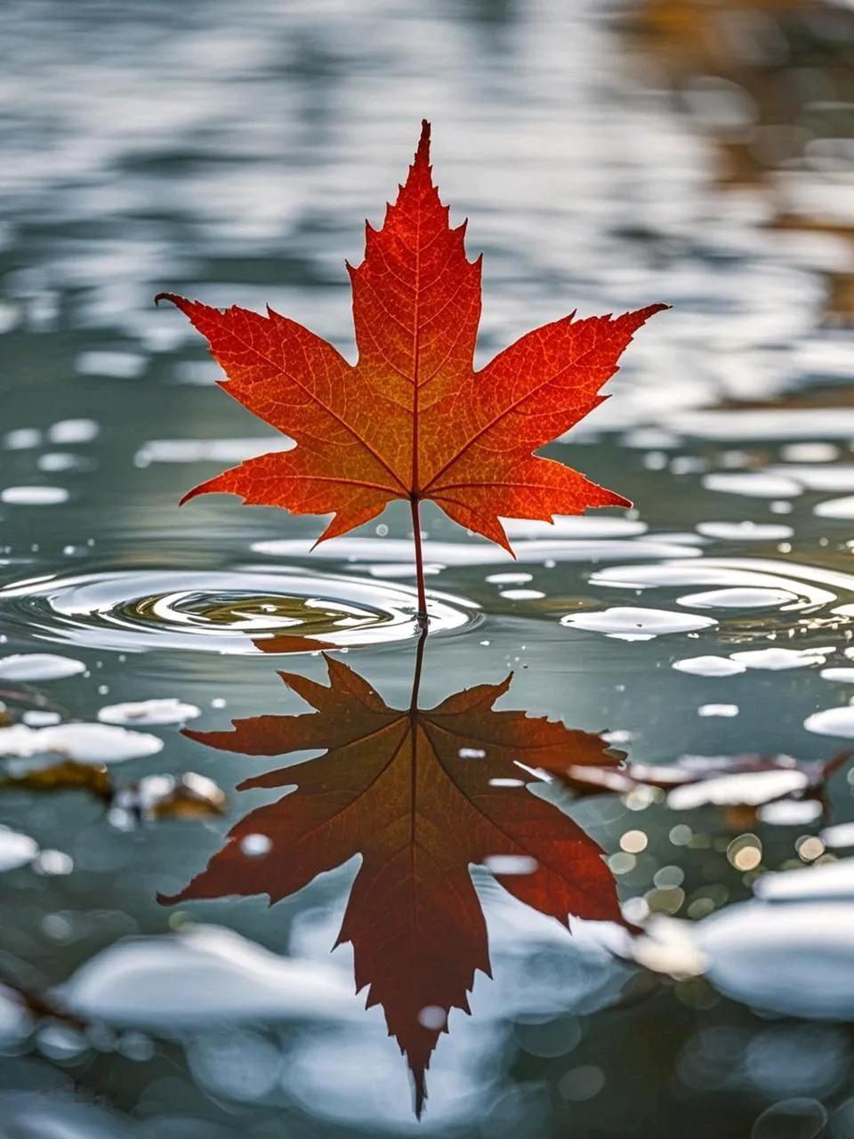 霜枫片片舞云轩 秀水拨弦奏曲闲 一剪秋风拂面去 万叶辞秋飞满天,美景令人陶醉