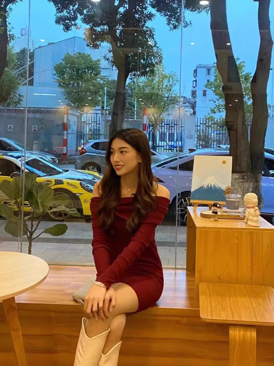 秋冬氛围感满满的一字肩连衣裙过年战袍