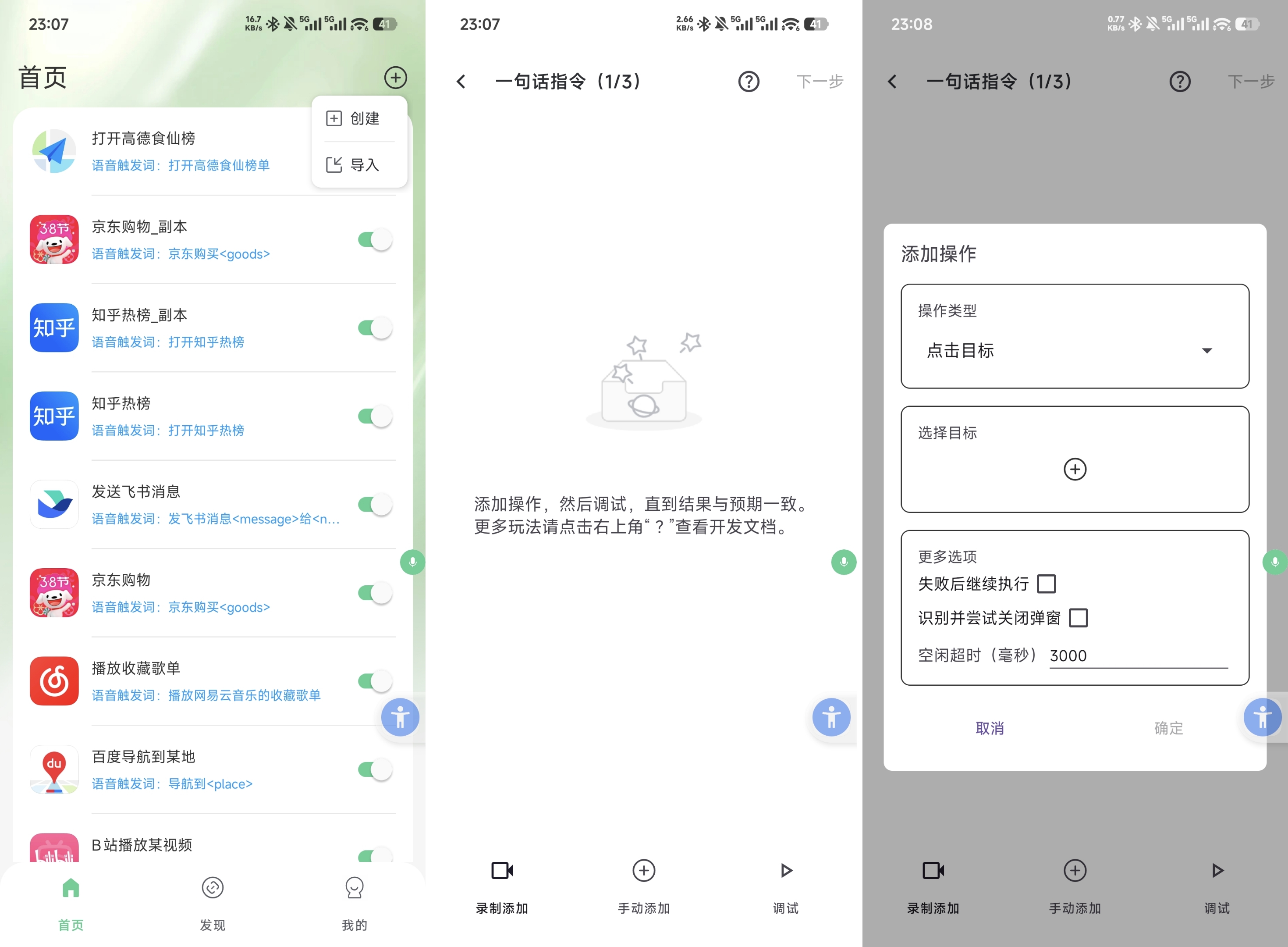为了同时满足科技极客的深度探索需求和普通用户的便捷诉求,煎饺 App 设计了高度可定制化的指令设置系统。对于热衷折腾的科技极客而言,App 提供了开放的指令编辑界面,用户可以根据自己的使用习惯,自由组合不同应用的功能,创建专属的 “超级指令”。比如,有极客用户开发出 “会议模式” 指令,实现 “语音触发后自动开启手机录音、静音、定位共享给团队、同步打开会议纪要文档” 的多任务联动,这种 “自定义创造” 的乐趣,让煎饺 App 成为酷安等科技社区的热门讨论对象。而对于追求简单便捷的大众用户,App 内置了数十种预设指令模板,涵盖通勤、办公、休闲等高频场景,用户只需一键启用,无需任何专业设置,就能快速享受智能效率服务。