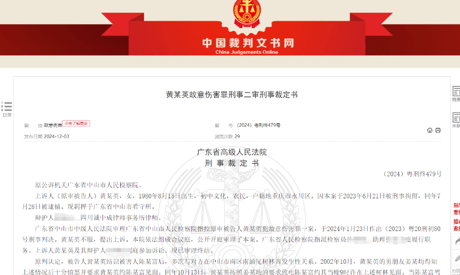 综上,二审法院驳回上诉,维持原判。最终,黄某英因犯故意伤害罪被判处有期徒刑八年。