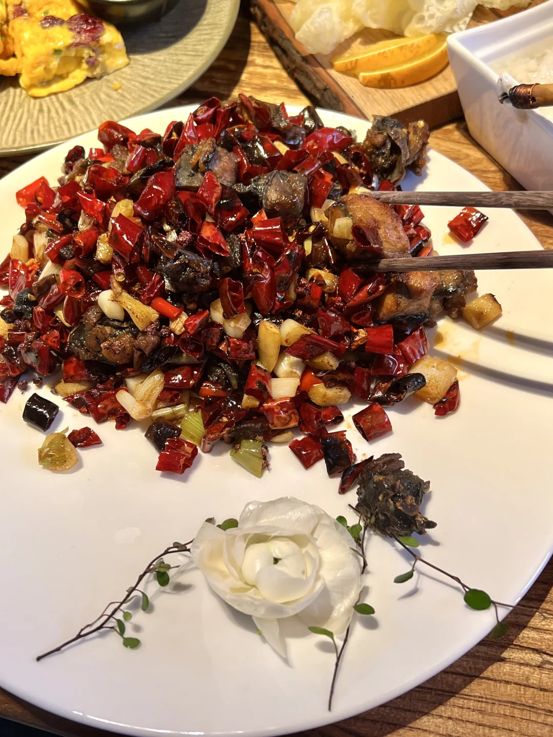 名宿老板推荐我去的!果然本地人推荐的不会踩雷! 吃到了地地道道的炸乳扇和蜂蜜辣子鸡,好吃到停不下来! 他家拍照📸还出片,氛围感十足 分上下两层,楼顶的景色真的好美 建议拍一个小时再吃饭🥹🥹