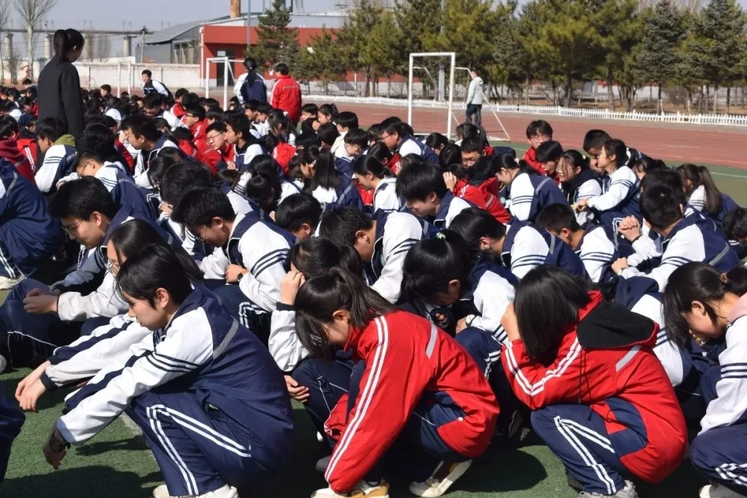 各班师生按照预定路线快速抵达操场集结区域后,按4路纵队蹲下,班主任立即清点本班人数,填写《集结人员报告统计表》并及时上报。整个疏散环节紧张有序,师生配合默契,充分展现了良好的应急处置能力。