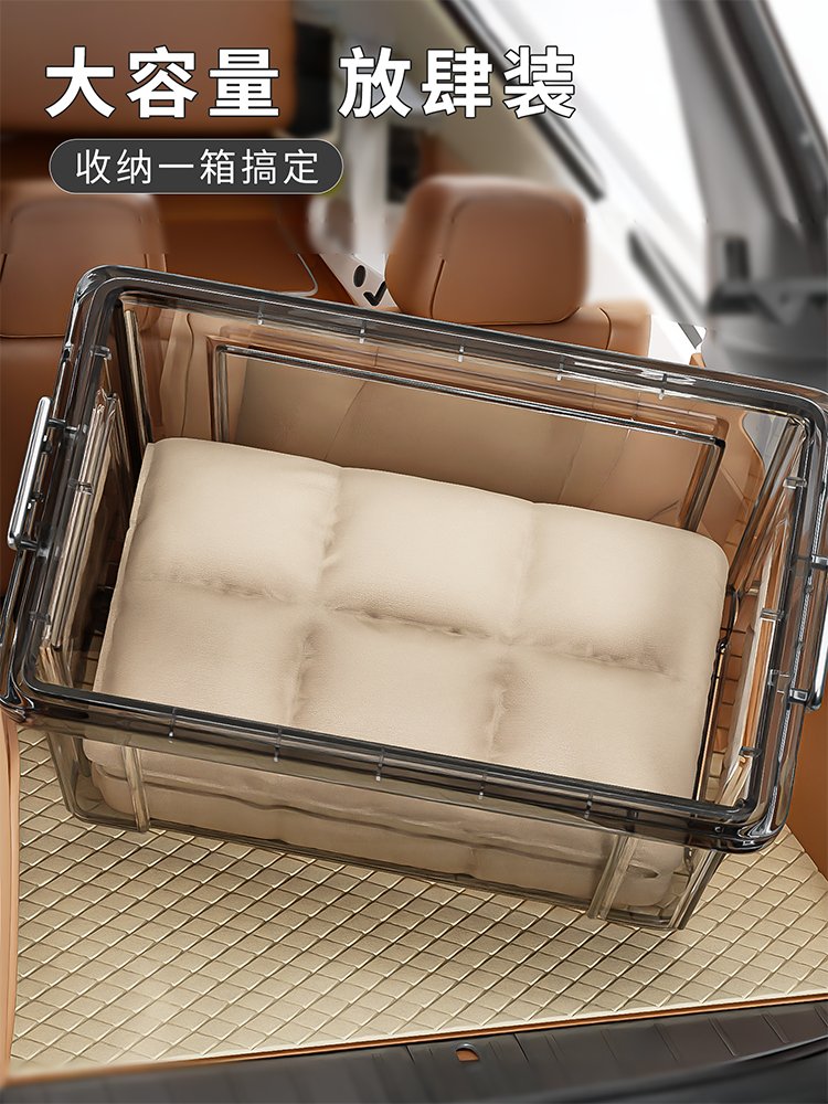 【家居收纳神器】车载收纳箱,一箱搞定全家杂物! 对于家庭主妇来说,一个实用的收纳箱是必不可少的。这款车载收纳箱不仅能装下11床冬被,还有超强的承重能力,可承受两百斤。多种规格设计,适合收纳药品、零食、玩具、春夏衣物和冬被毛毯。强力紧实卡扣,防潮防尘效果非常好。一年质保,破损包赔,让你用得安心。快来体验一下,让家里变得更加整洁吧!