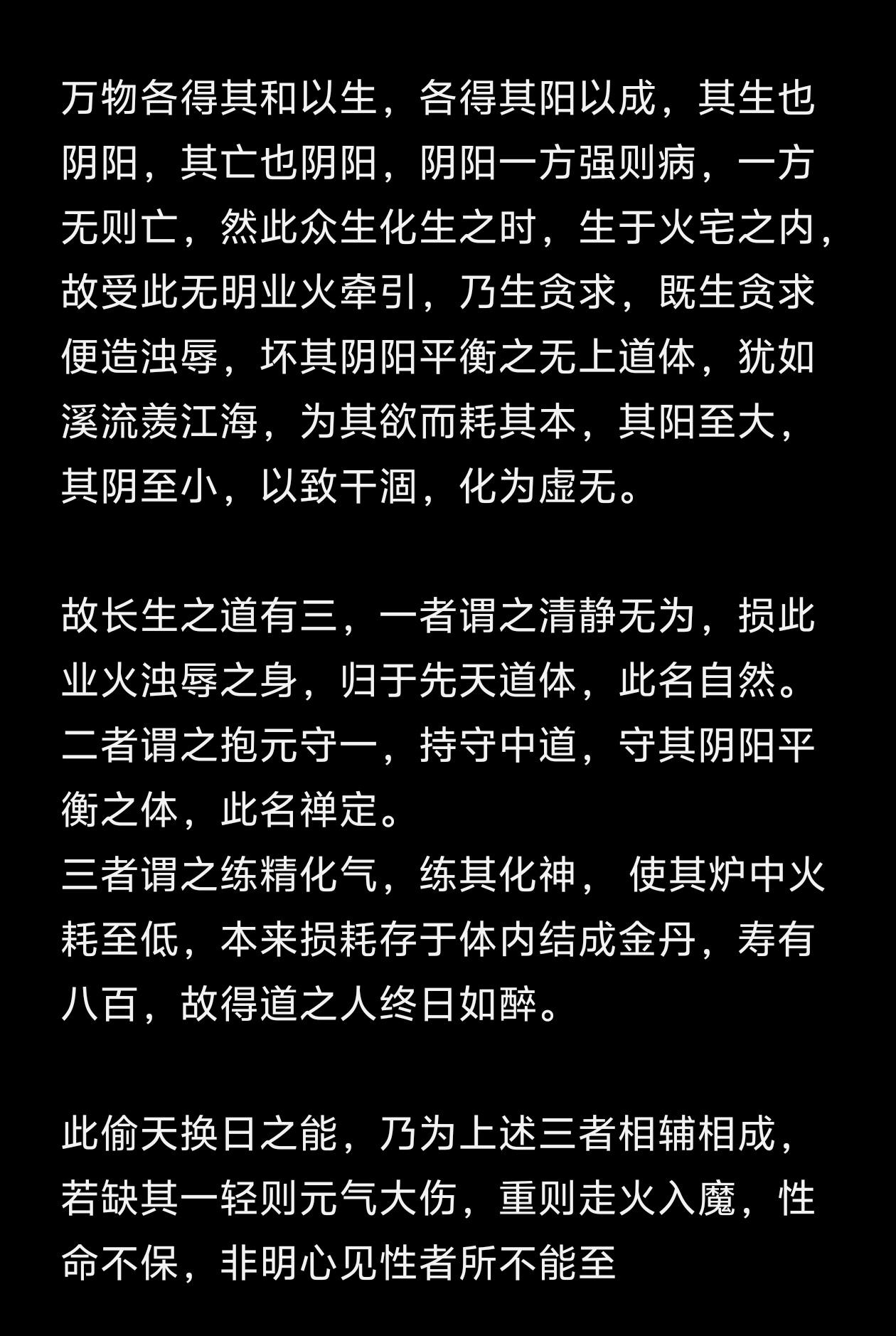长生之本在于阴阳平衡,长生之术在于减其功耗,故得道之人终日如醉