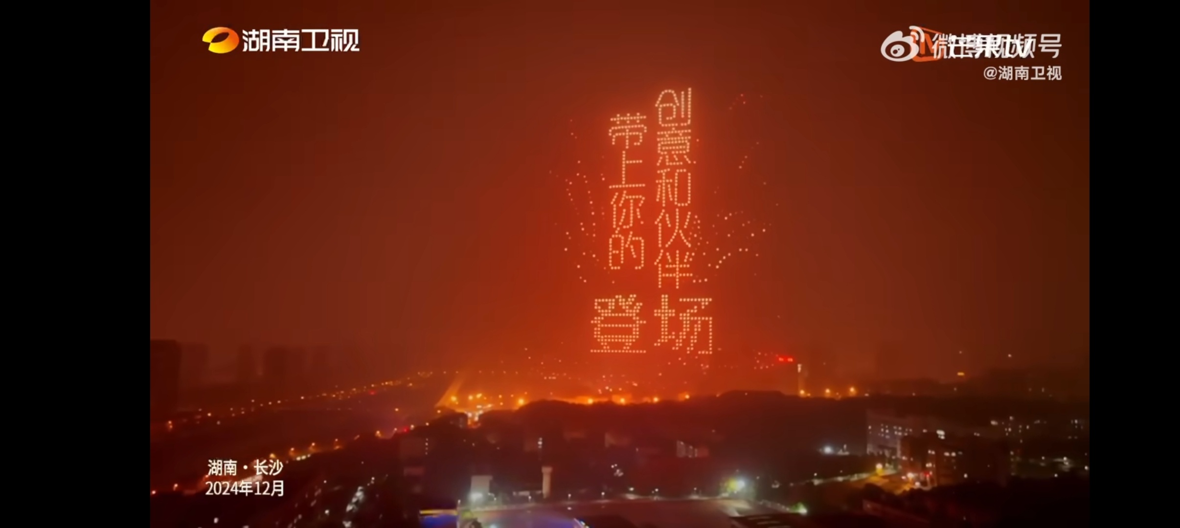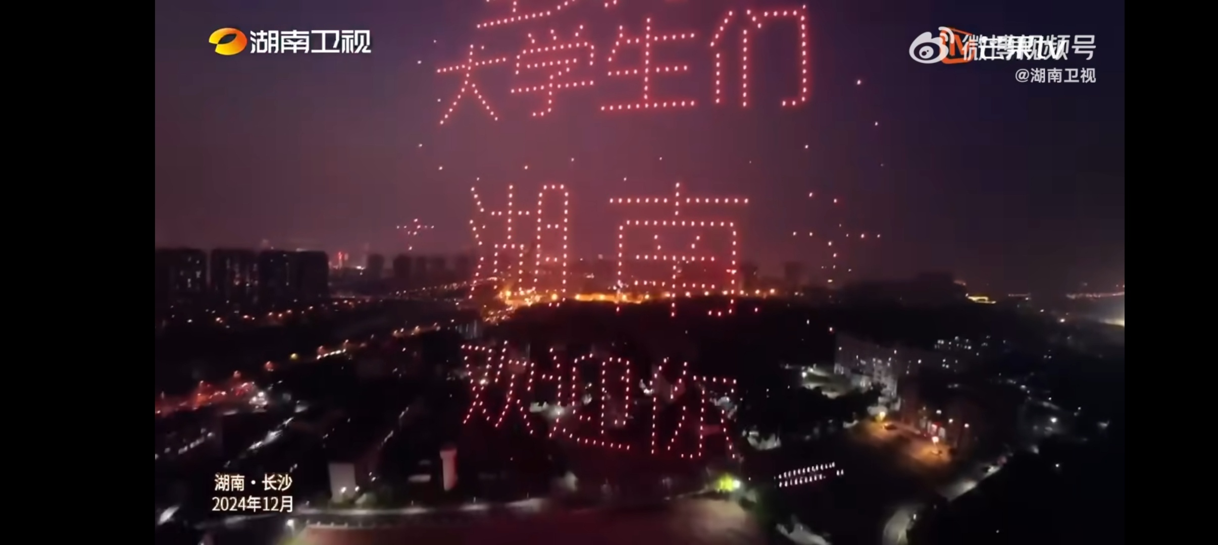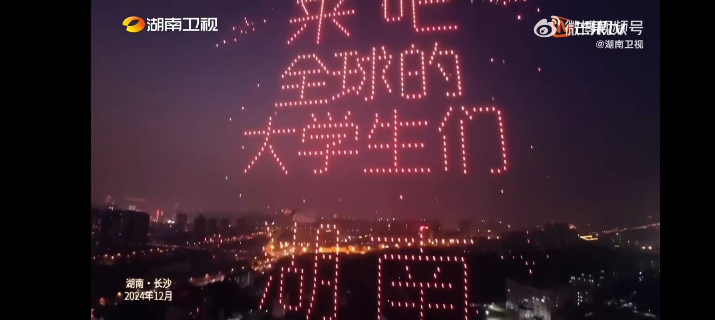 湖南抢人抢上天了 夺金2025 千架无人机点亮长沙学院夜空,诚邀全球大学生来