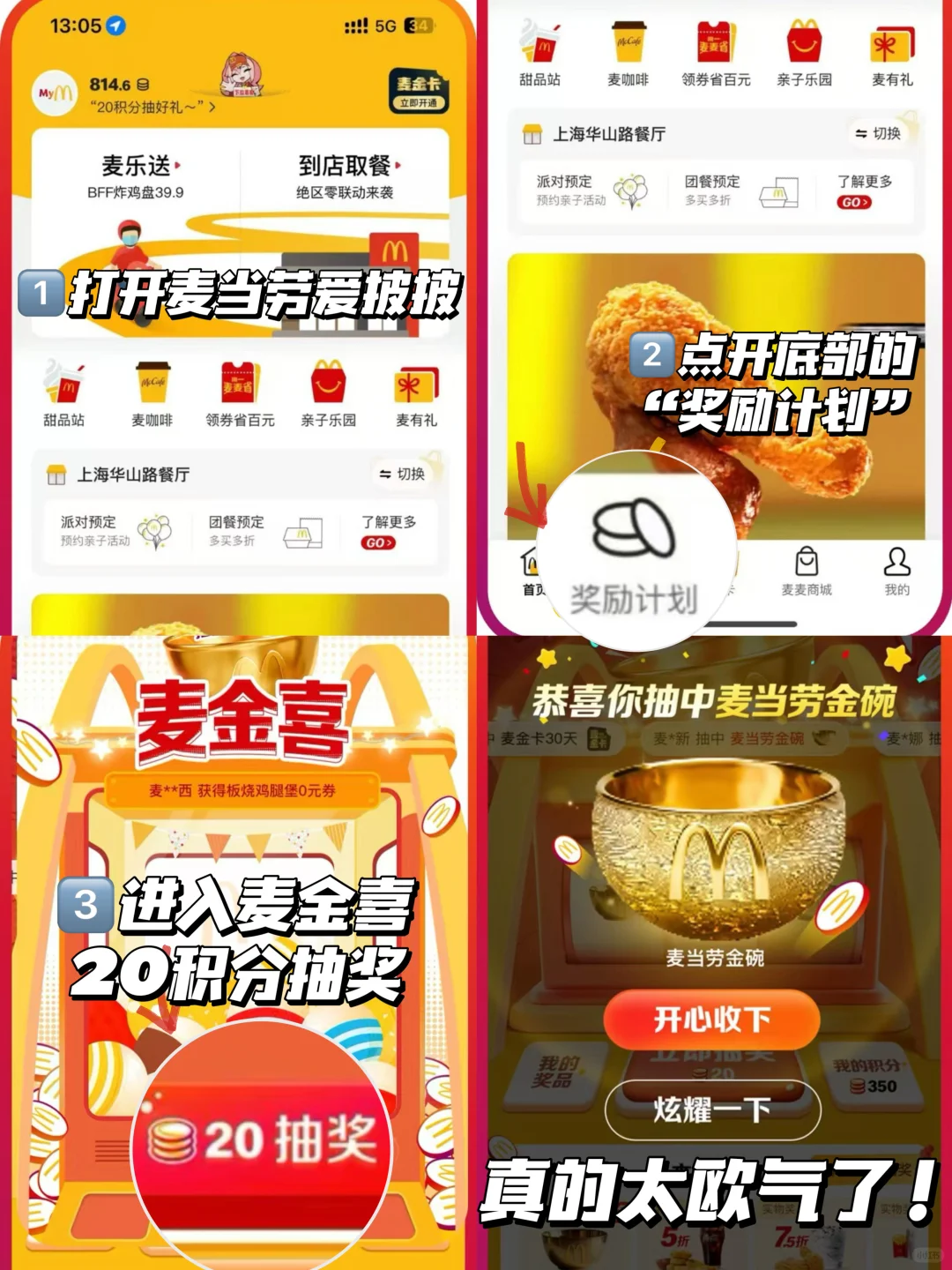 每周六来麦当劳爱披披【麦金喜】积分抽奖,zui高拿万元金杯!!
