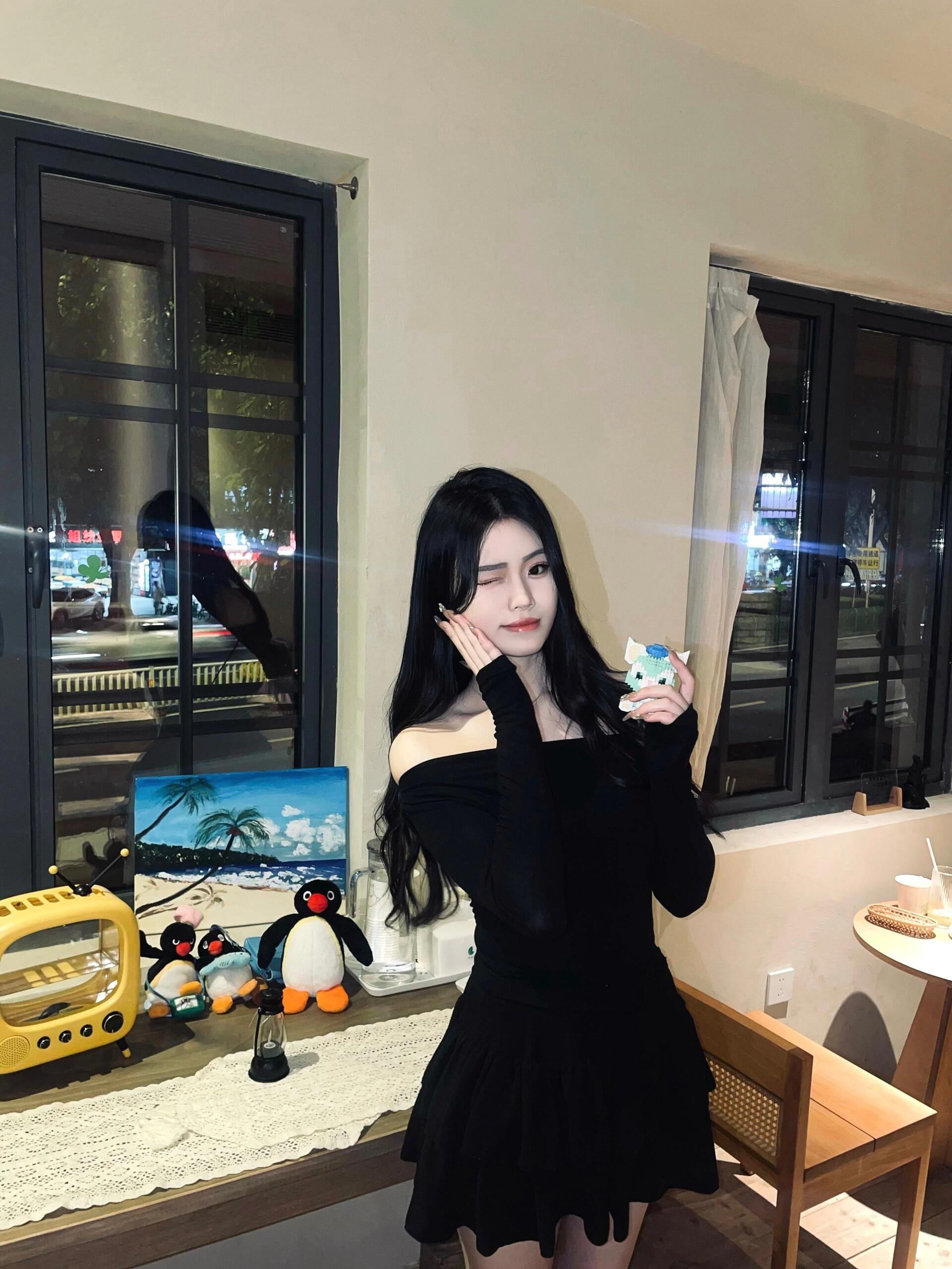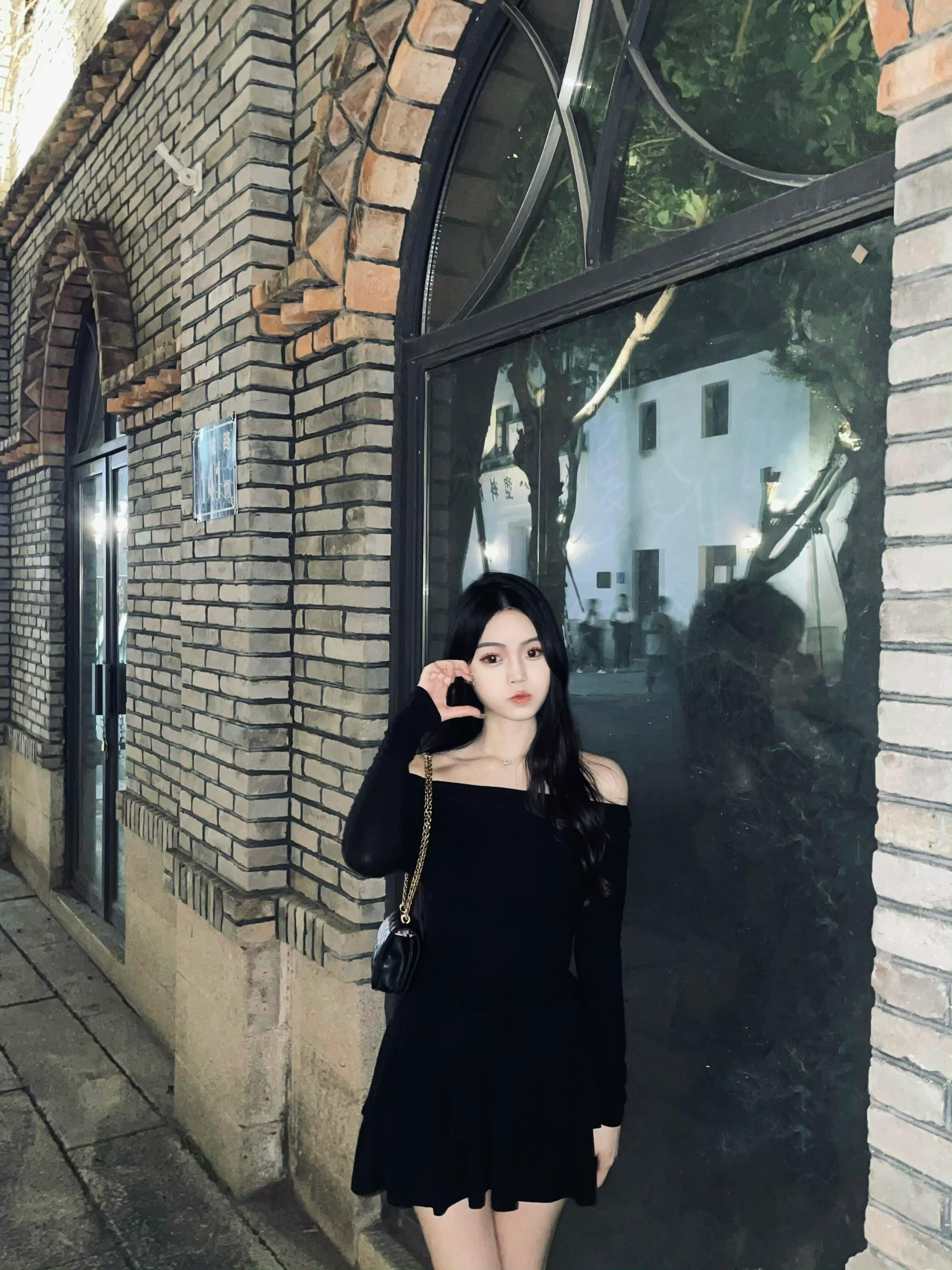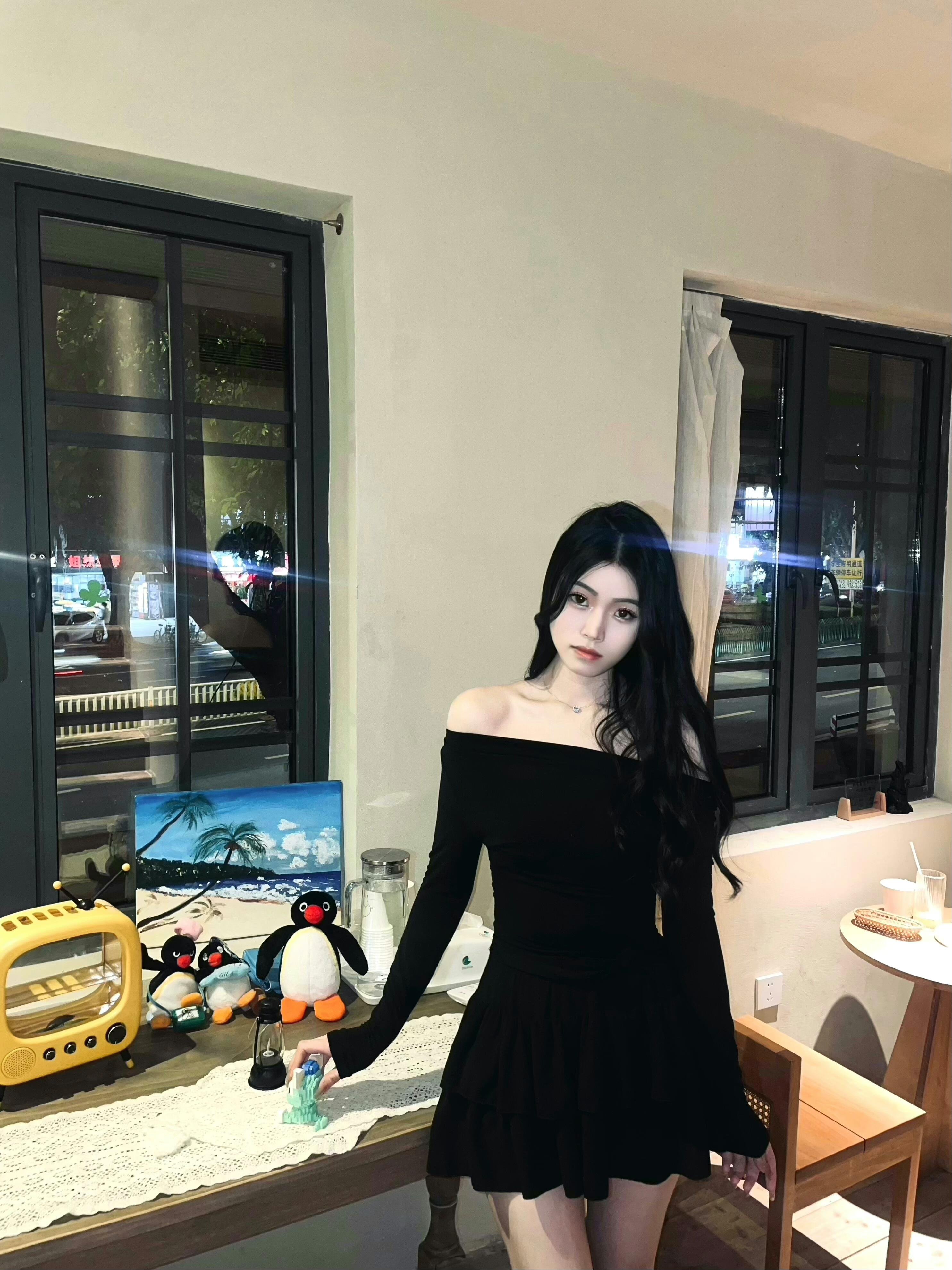 惊啦!这条一字肩黑色短裙真的一秒出片!