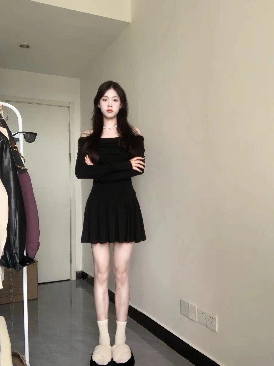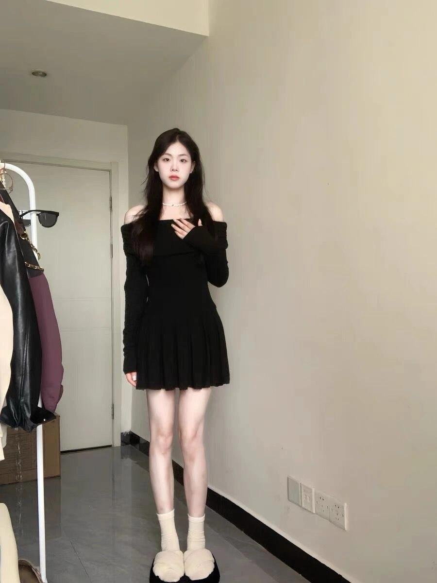 挖到一件超好看的一字肩小黑裙