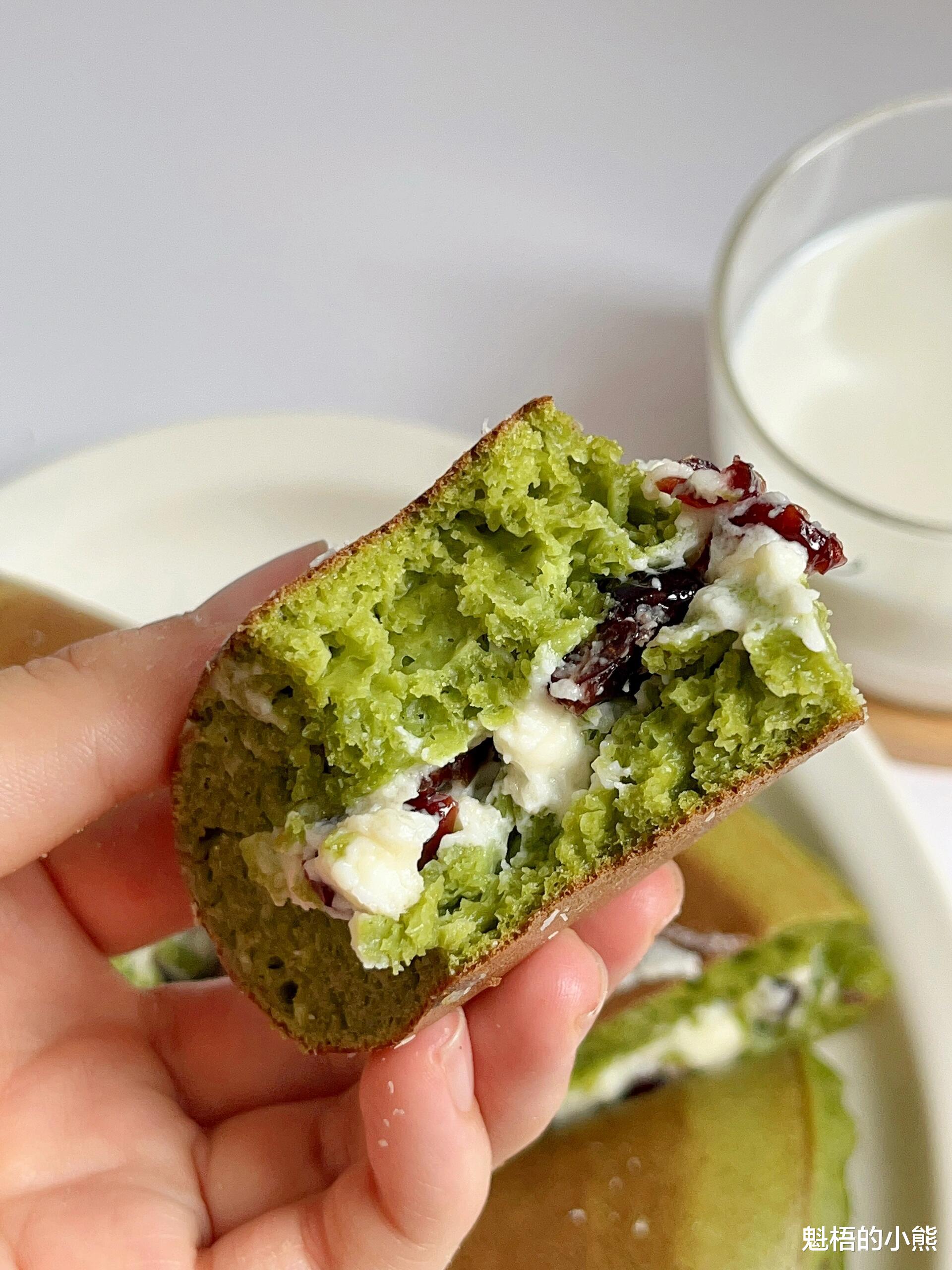 我第一次制作这款松饼,是在一个不想早起的周末。提前一晚调好面糊放入冰箱发酵,次日清晨简单煎制,孩子捧着夹满奶酪的小松饼吃得津津有味,嘴角沾满细碎的蔓越莓果干。他告诉我:“妈妈,这个松饼像绿色的云朵。”自此之后,这款清爽简单的抹茶松饼,便成了我家夏日早餐的常驻选择。无需烤箱、无需打发,简单搅拌即可制作,温柔又治愈。抹茶的清爽和奶酪的绵密,是最适配夏日的治愈口感。如果你也喜欢松饼,或是想要更换早餐花样,一定要试试这个配方。当平底锅里的面糊冒出第一个细碎气泡时,你会觉得——这个夏天的早晨,从这一口清新开始了。