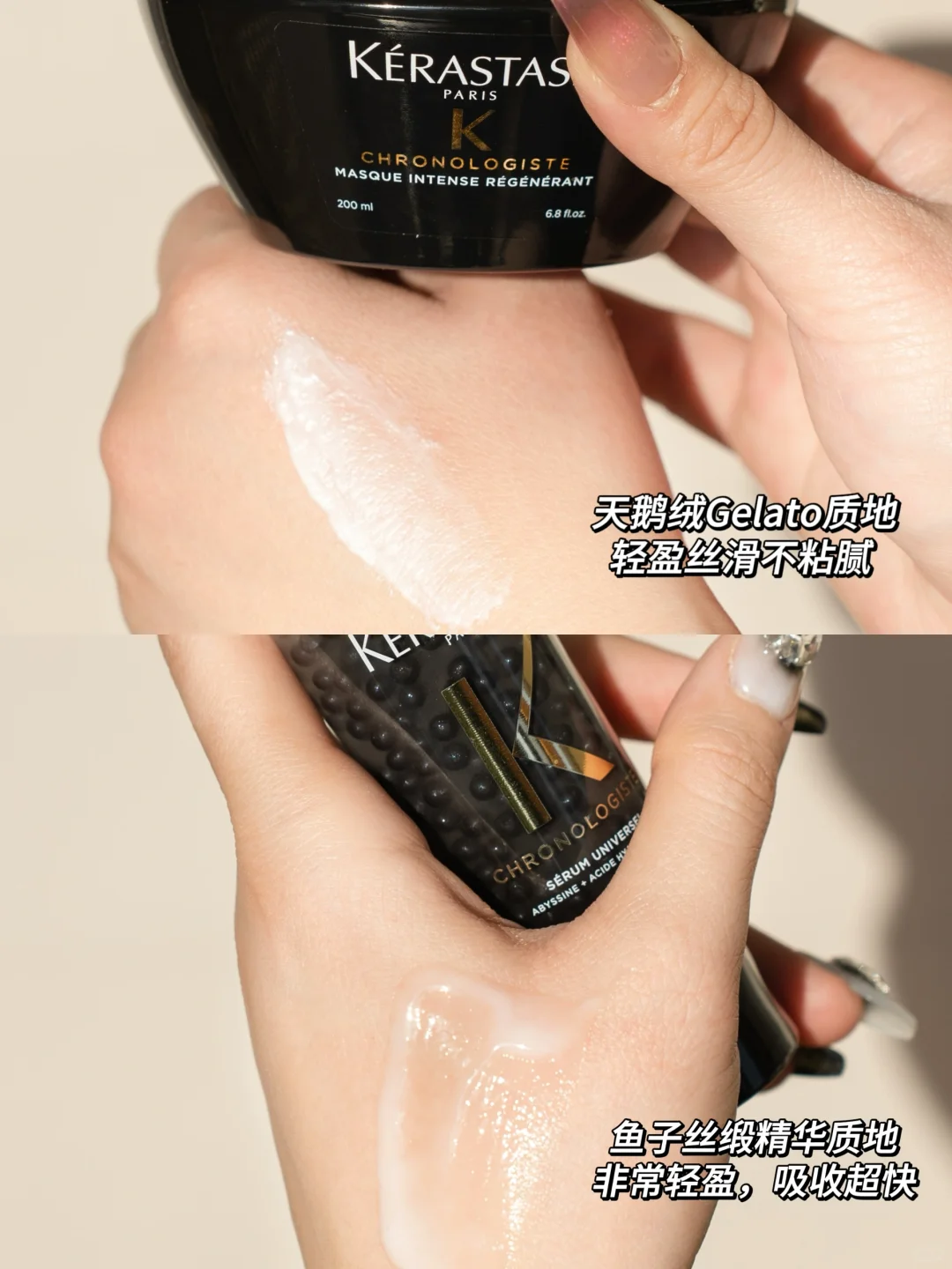 鱼子丝缎精华质地,非常轻盈,吸收超快