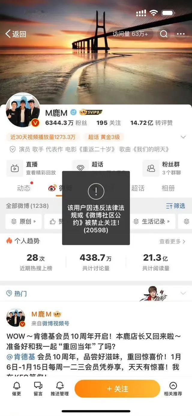 吃不完的瓜!又一个顶级流量塌了!鹿晗全网被禁止关注,粉丝说是因为之前直播间比中指的事,半年后才能解封。 我个人觉得因为中指就全网禁止关注是不现实的,这个动作是很不雅观,但绝对不至于全网封杀。 只不过用中指这个理由来安抚粉丝,估计这两天要有通告了。