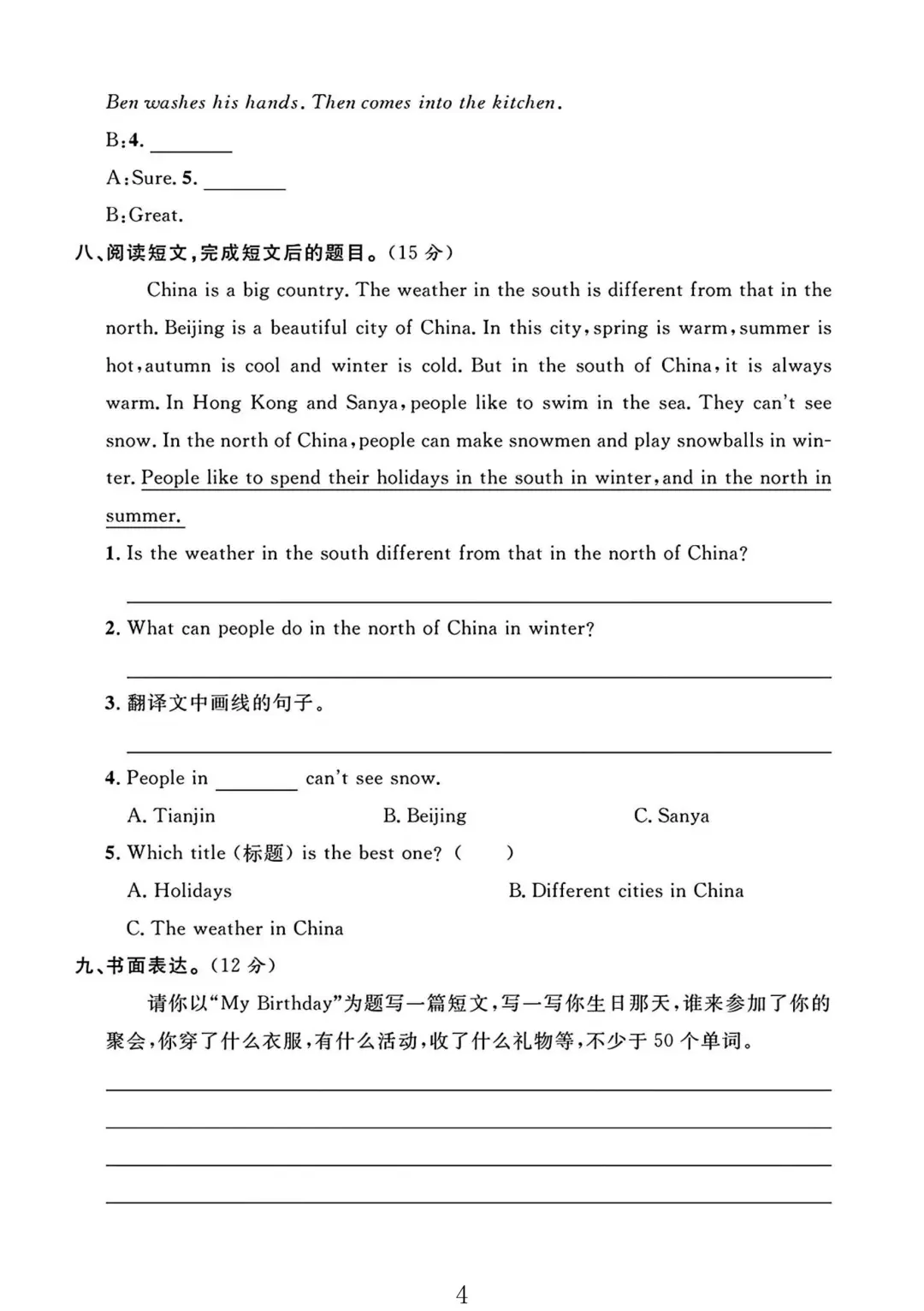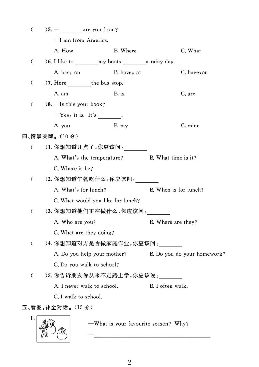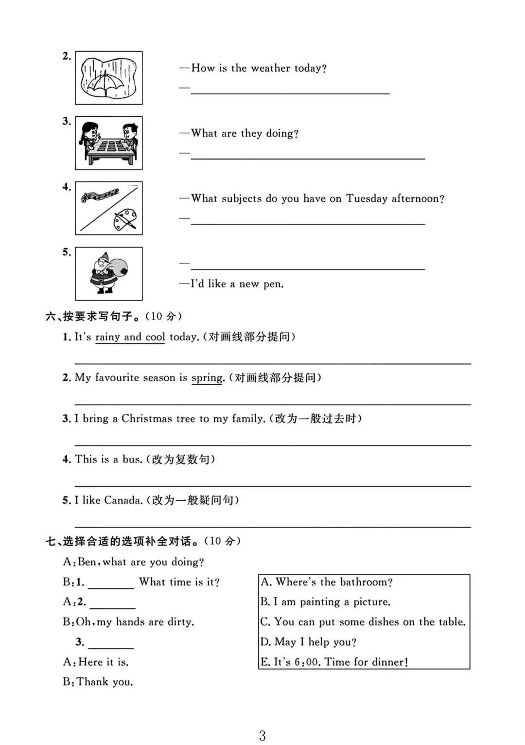 冀教版六年级英语上册期末摸底卷 3