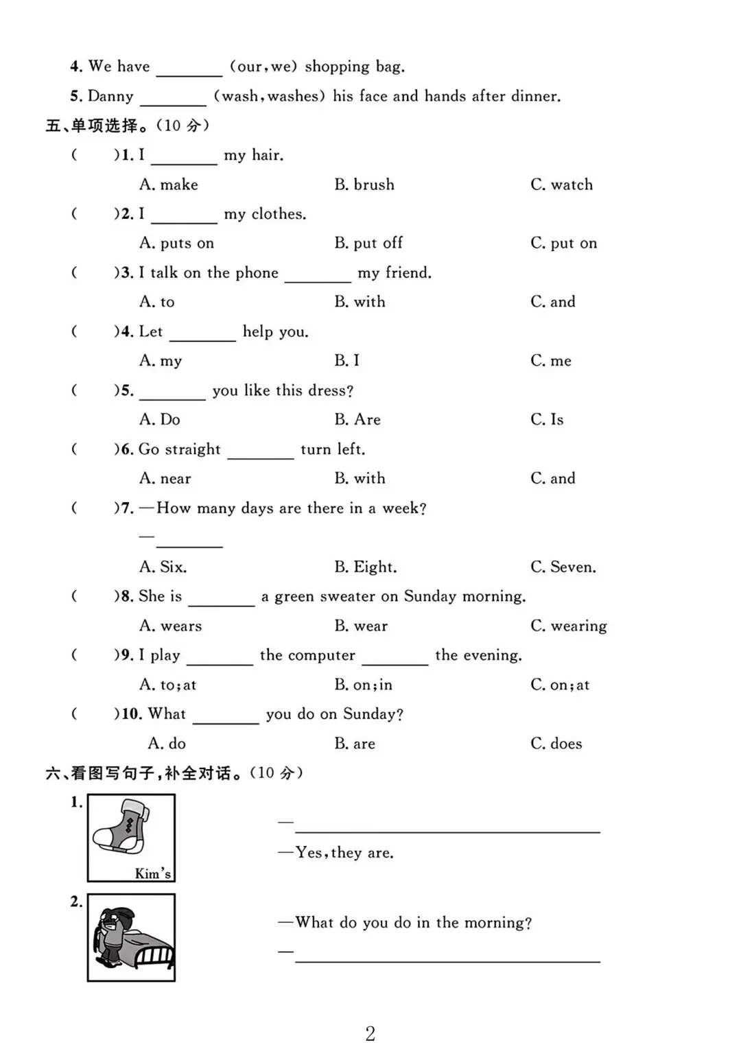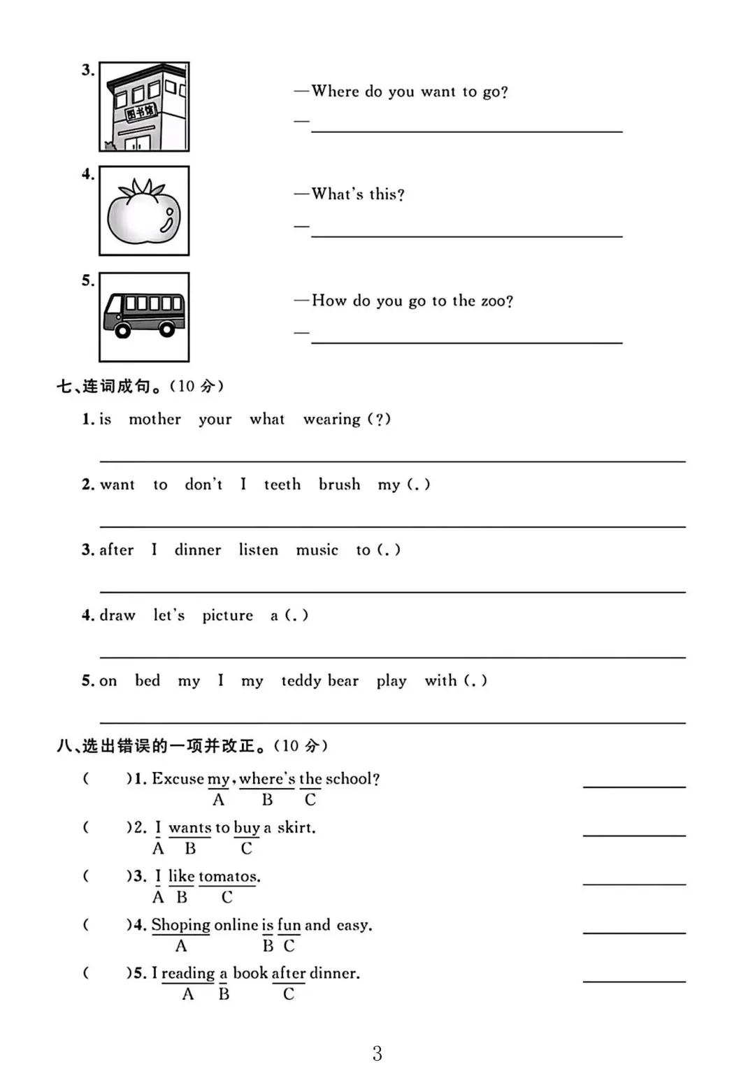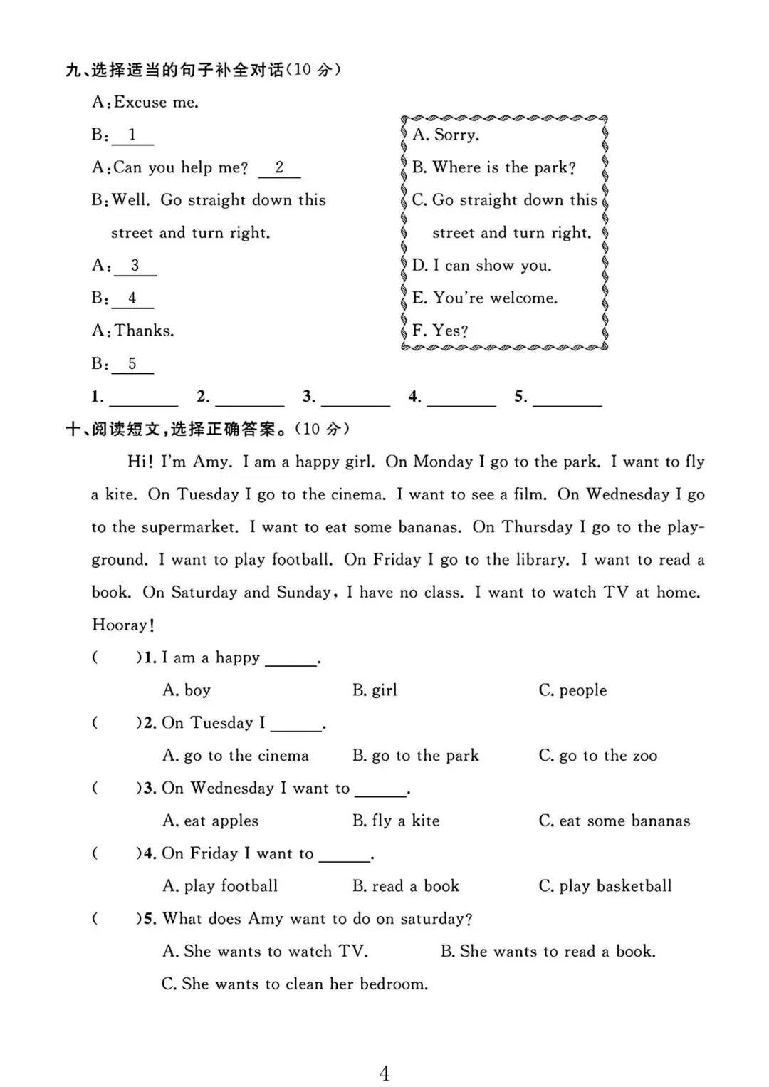 冀教版 四年级上册英语 期末考试 期末 试卷 电子版可打印