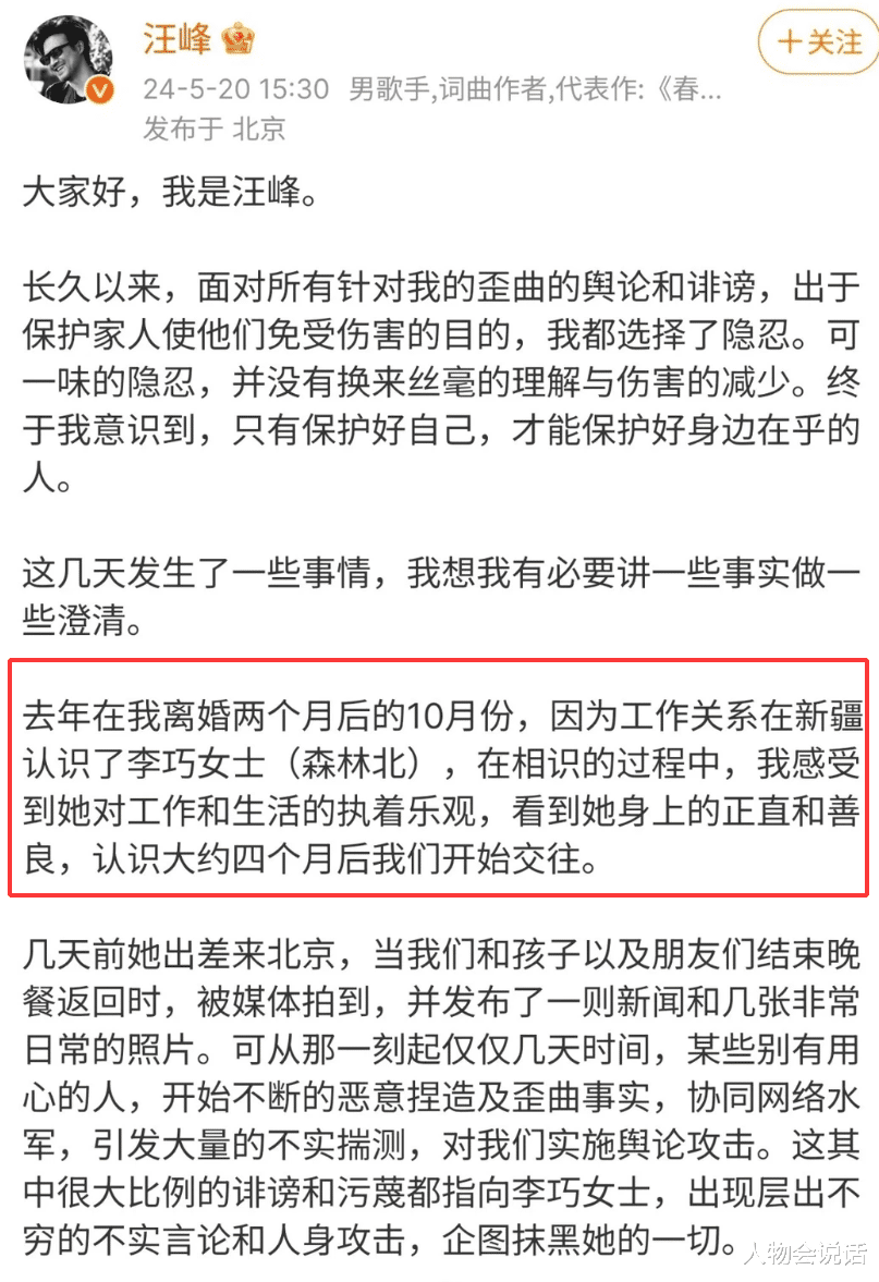 离婚之后,汪峰仅用2个月,就遇到了网红森林北,从此跟过去彻底翻篇!如此干脆利落的告别过去,如此生机勃发的走向新欢!