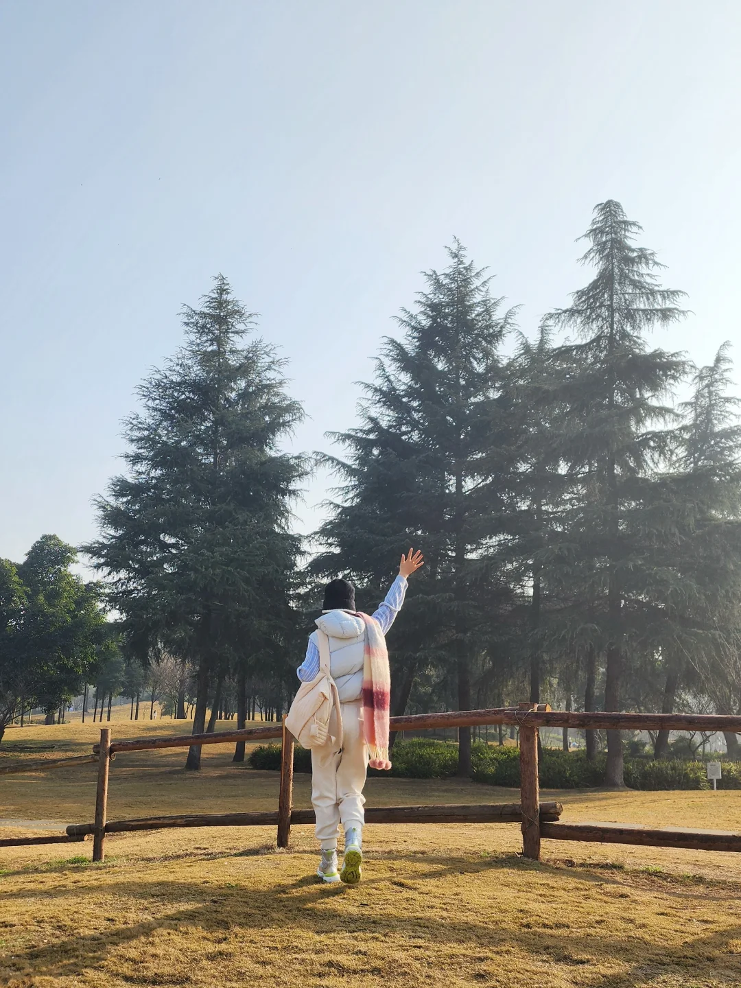 没想到冬天来拍这个公园还是挺出片,没有夏天的郁郁葱葱,绿意盎然,但是木栅栏配松树居然能拍出暮光之城森林的清冷氛围感! 角度也很重要哈哈哈,公园里还有一片湖也挺有感觉的,湖边也可以卡两张!🥹这个地方一出太阳全是来露营的人,免费的!可能不能明🔥,可以准备冷餐晒晒太阳也很惬意~是露营或者遛娃的不二之选! 🚩公园名:双流中心公园 🕹️地址:导航公园名字,双流普贤村金河路 🅿️:有东西两个停车场,东停车场离露营地很近!停车费1元/小时