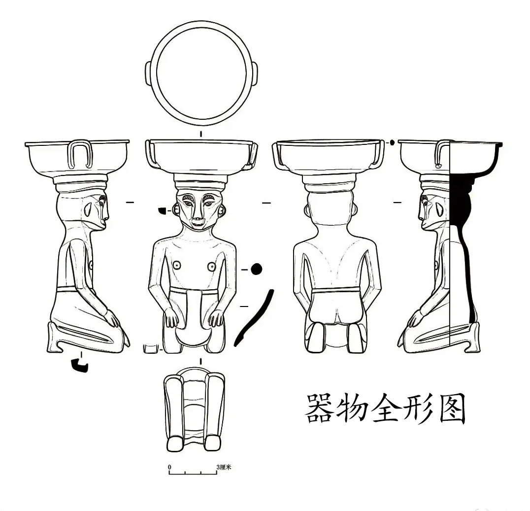 《考古》2011年7期刊登了《山西翼城县大河口西周墓地》,其中M1017出土的一件形制特殊的青铜器十分引人瞩目,其造型显得另类而怪异,一个作跽坐状的男相铜人头顶圈足盘的造型,在文中定名为“铜人顶盘”,图一。 这样形制的器物在以往的考古发掘和传世的青铜器中极为罕见。该器物制作小巧而精致,通高13.4厘米,盘径6.7厘米,铜人高10.5厘米。上为盘,方唇,直壁圆收形成平底,双附耳,圈足,与青铜盘的造型相同,但盘体甚小。下为跽坐状铜人,体态偏瘦,腹部中空,五官怪异,上身赤裸,双腿弯曲呈跽坐状,双手自然垂放于双膝上,腰系细带,敝膝垂于双膝间。该器用浅细线条刻划出人的眉、目及双乳,形象非常生动写实,为了使铜人的头部与铜盘更好地连接,还在铜人的头顶和铜盘的圈足间加了圆形垫圈,以增加稳固性。 目前学界有三种观点: 一、铜灯说。 古代点灯时用的燃料是膏,膏即含油脂比较大的脂肪。要想让燃烧的油脂能够聚集在一起,就必须用盘、碗一类的容器,此灯的设计构思正是充分考虑了盘可以盛装油脂的特点,跽坐铜人则起了承托灯盘的作用。古代为什么要以跽坐人形作为器物的足?这样的设计更可能地就是为了充分体现贵族的身份高贵。而以人形为器足的器形也有很多,如山西晋候墓地63号墓出土的立鸟人足筒形器和龙耳人足方椟等器物均是采用了人形作为器足,此灯以人形为足也符合当时对器物造型的设计理念。笔者支持该种观点。 二、酒器说。 跟铜人顶盘同时期大墓中的铜器多以盘盉伴出为主。所以,铜人顶盘也可能属于酒器,宴饮祭祀时,为其他酒器的盖置。 三、洗盥礼器说。 该铜人为二十到三十岁男性,头顶双耳盘,五官刻画明显,上身裸露,下身围有敝膝,以跪坐姿势挺直腰身。《礼记·内则》中记载行沃盥之礼,“进盥,少者奉槃,长者奉水,请沃盥,盥卒授巾。”其中少者奉盘这一形象,应该就是铜人顶盘的制造的创意来源,或是最初形象。所以,青铜人顶盘的盘子部分,可能是沃盥礼中用来承接污水的器皿。这件铜人顶盘出土于西周中期偏早期的墓地,在同时期,未出现较高的桌凳,为保证沃盥之礼仪式的正常进行,可由仆人正坐充当盆架。另一方面,青铜人顶盘中的铜人之所以赤裸上身,可能是因为进行盥洗时,溅出的水会沾湿衣物,所以赤裸上身可避免着湿衣杉而影响盥洗礼的礼仪性。 青铜器 考古 博物馆 历史 文物
