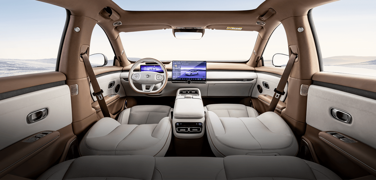 舒适性配置方面,全车座椅均配备通风、加热、按摩功能,前排座椅放倒后可与二排衔接形成“马尔代夫电动按摩椅模式”,后排座椅支持145°无级调节及记忆功能。此外,四门双层隔音玻璃、全景天幕电动遮阳帘、9.5L车载冷暖冰箱等配置,进一步提升驾乘体验。上市权益期内,新车还将免费升级20扬声器NEVO Sound音响系统,支持7.1.4全景环绕声。