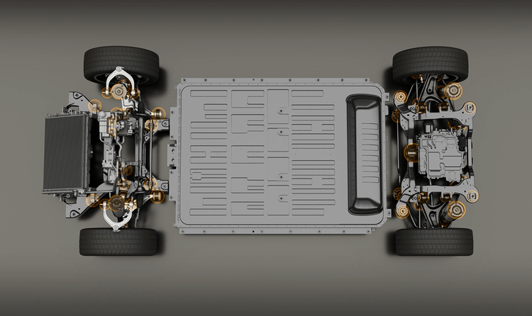 底盘部分采用全铝前双叉臂+后五连杆独立悬架,配备动态扭矩控制技术(IDTC),转弯半径仅5.5米,兼顾操控稳定性与乘坐舒适性,同时支持6kW外放电功能。