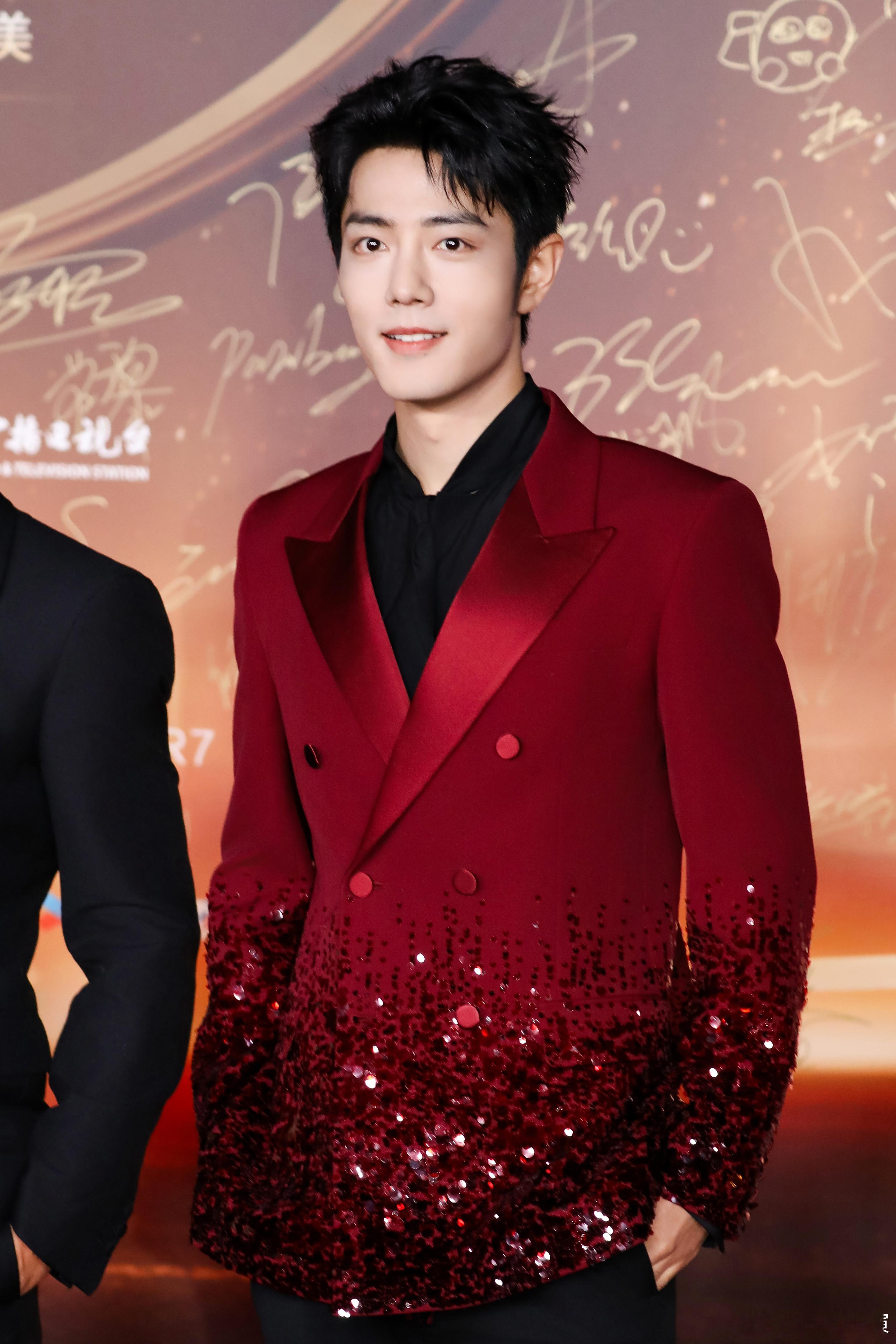 肖战Gucci定制礼服好闪 微博之夜,肖战身着品牌专属定制的西装,渐变亮片宛如