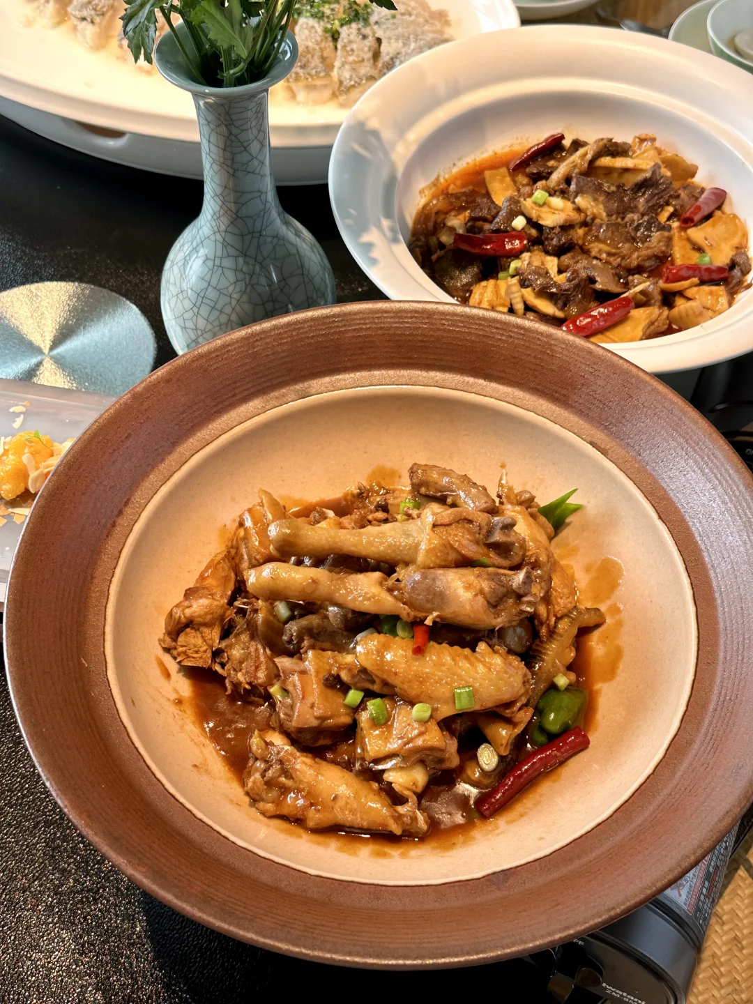 年底聚餐选了汉阳这家园林餐厅🏡 自带小花园,年味十足 优雅寂静~环境真的好chill!! 带家人来吃被狠狠夸了…… 生态武昌鱼🐟jujuju大一条 清蒸做法,鱼肉又鲜又嫩!! 淋上酱汁,激发了鱼肉的鲜香,好吃爱吃!! 姜辣跳跳蛙麻辣鲜香,蛙肉紧实有嚼劲,打底的蔬菜也好入味🤤