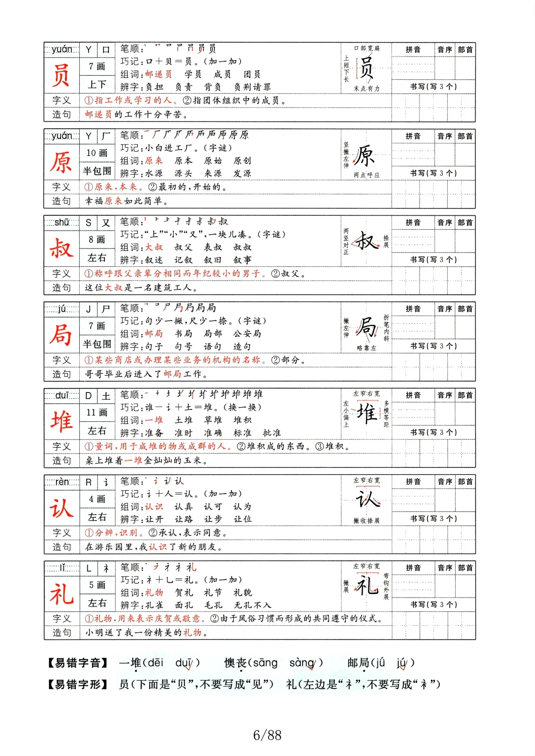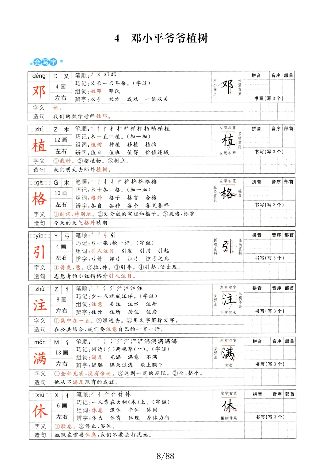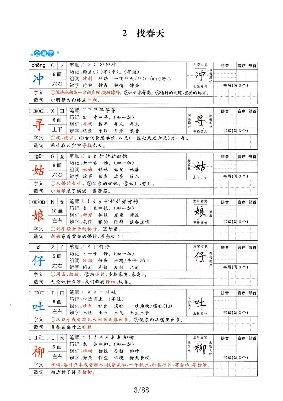 二年级语文下册字词预习册(组词+笔画)