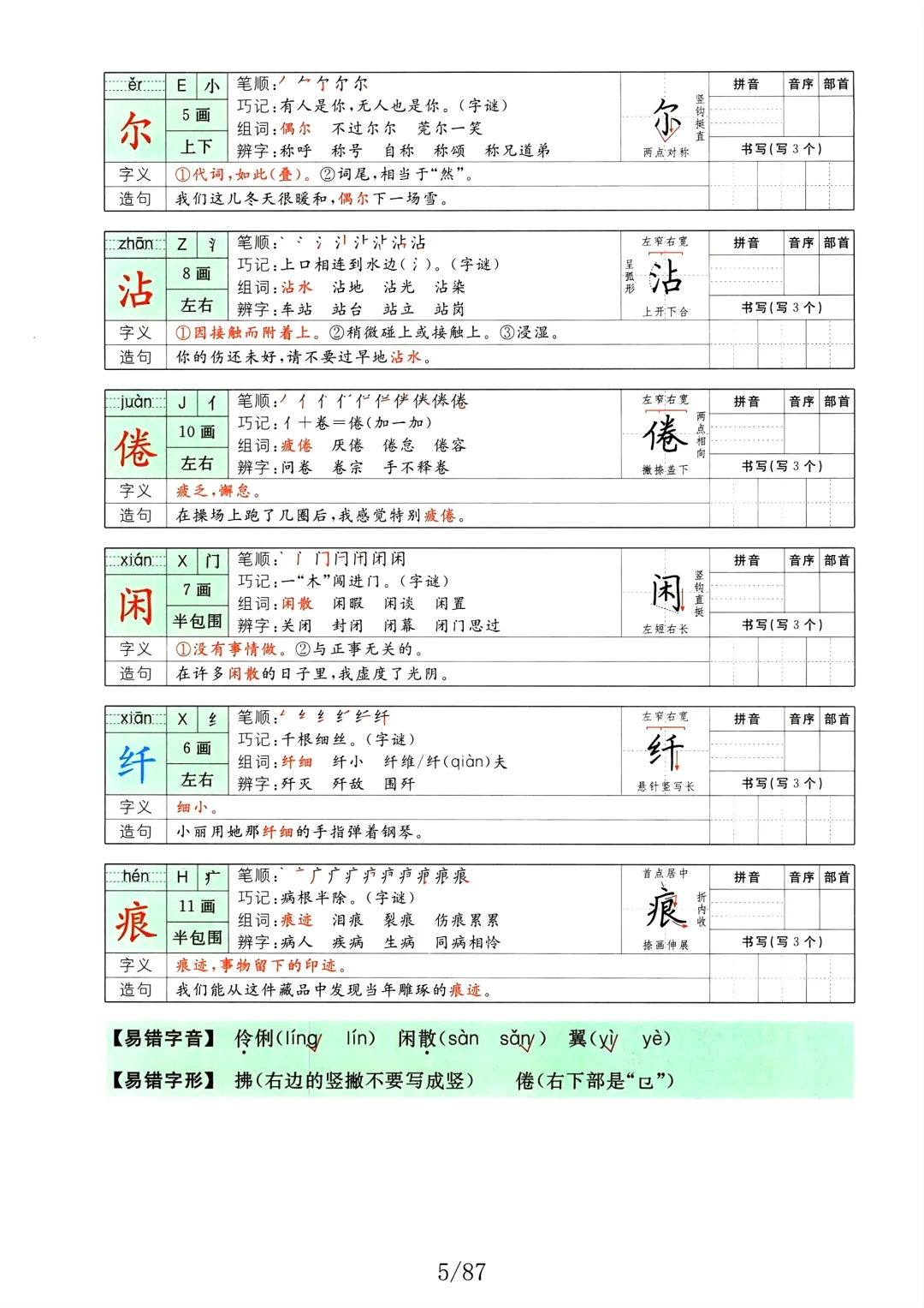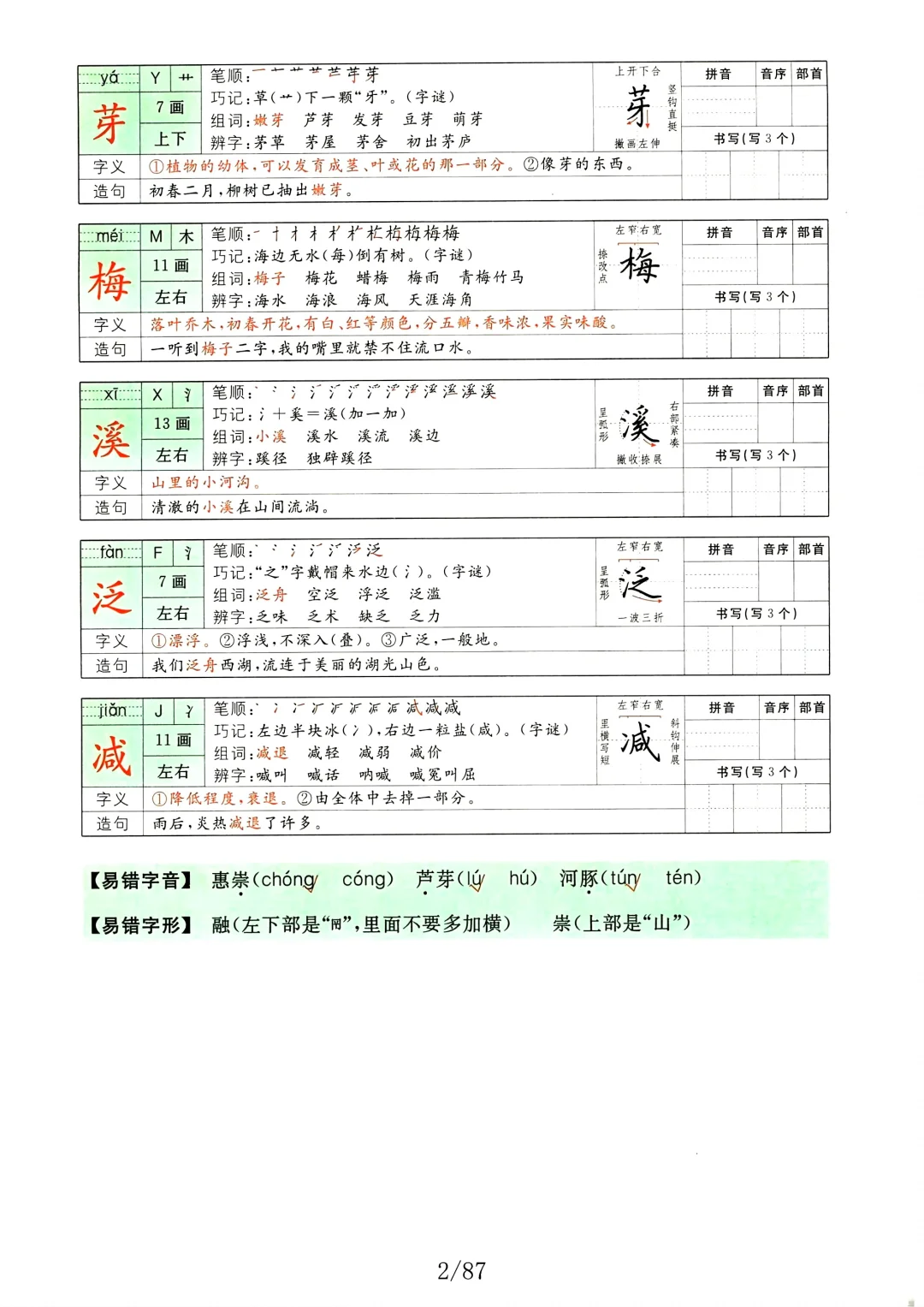 三年级语文下册字词预习册(组词+笔画)