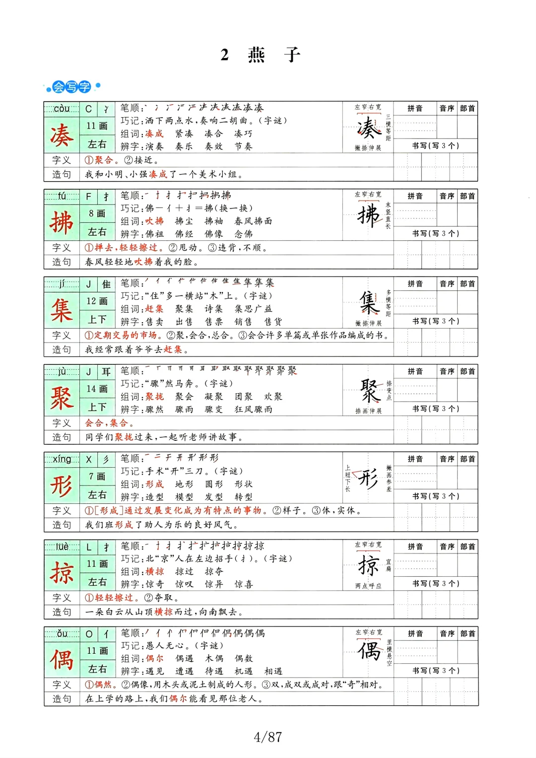 人教版 三年级语文下册 生字 组词 笔顺