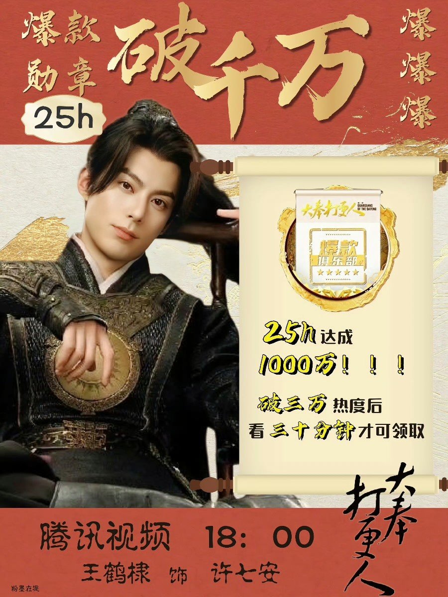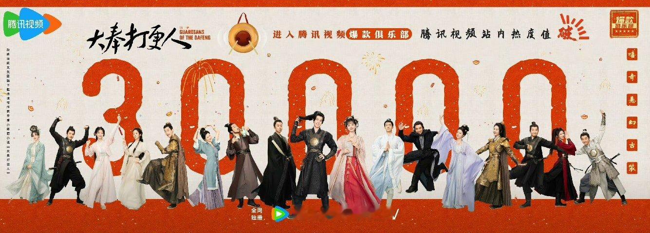 大奉打更人全方位爆 王鹤棣、田曦薇《大奉打更人》热度连续两天破30000,是2025年第一部破30000热度剧集,爆款徽章的领取人数都破了1000万,当之无愧开年第一爆剧!