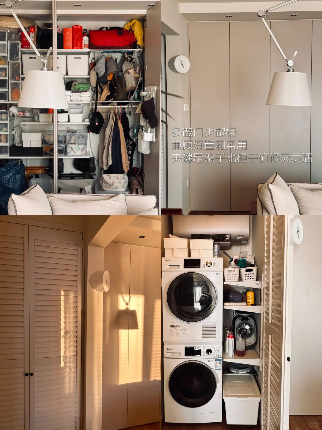 🏠我家放弃了大面积的全屋定制,选择上墙的收纳系统和成品衣柜解决储物问题,不但便宜能装灵活适应性强,还十分省钱。