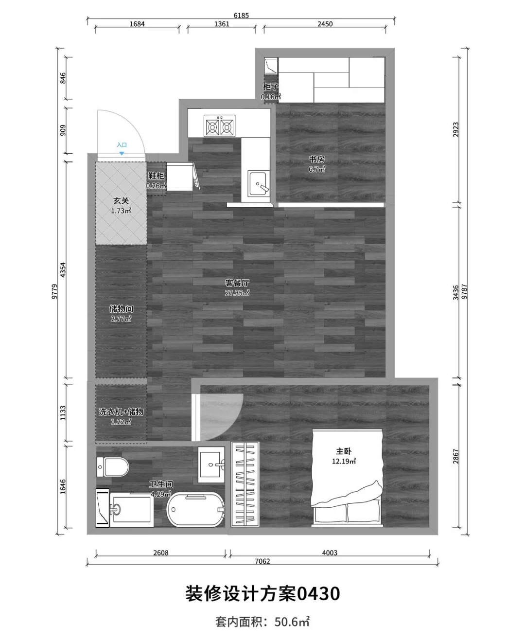 套内56平,工长半包辅材+水电4w8,自购主材+橱柜定制5w+