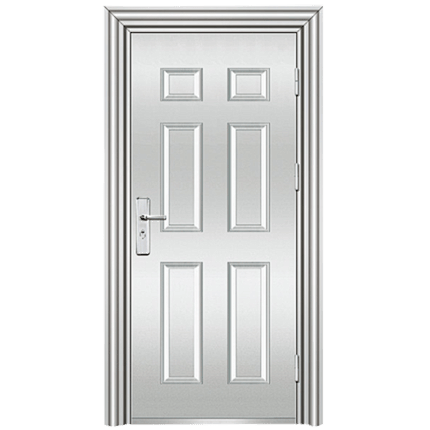 分为明铰链和暗铰链防盗门里较推荐明铰链。防盗门在开合时不受角度限制