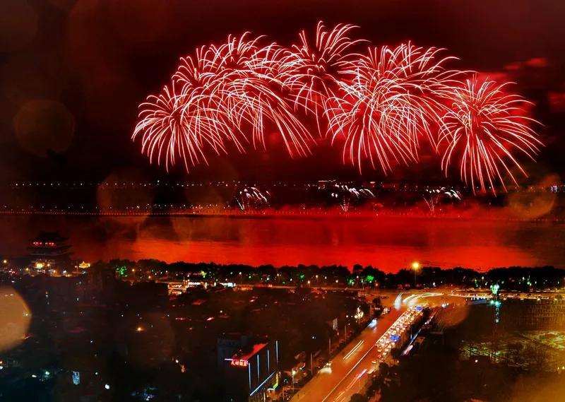 美丽长沙 春舞灵蛇耀星城, 湘江两岸尽朝辉。 月光皎洁映玉兔, 市民观光游客盈。