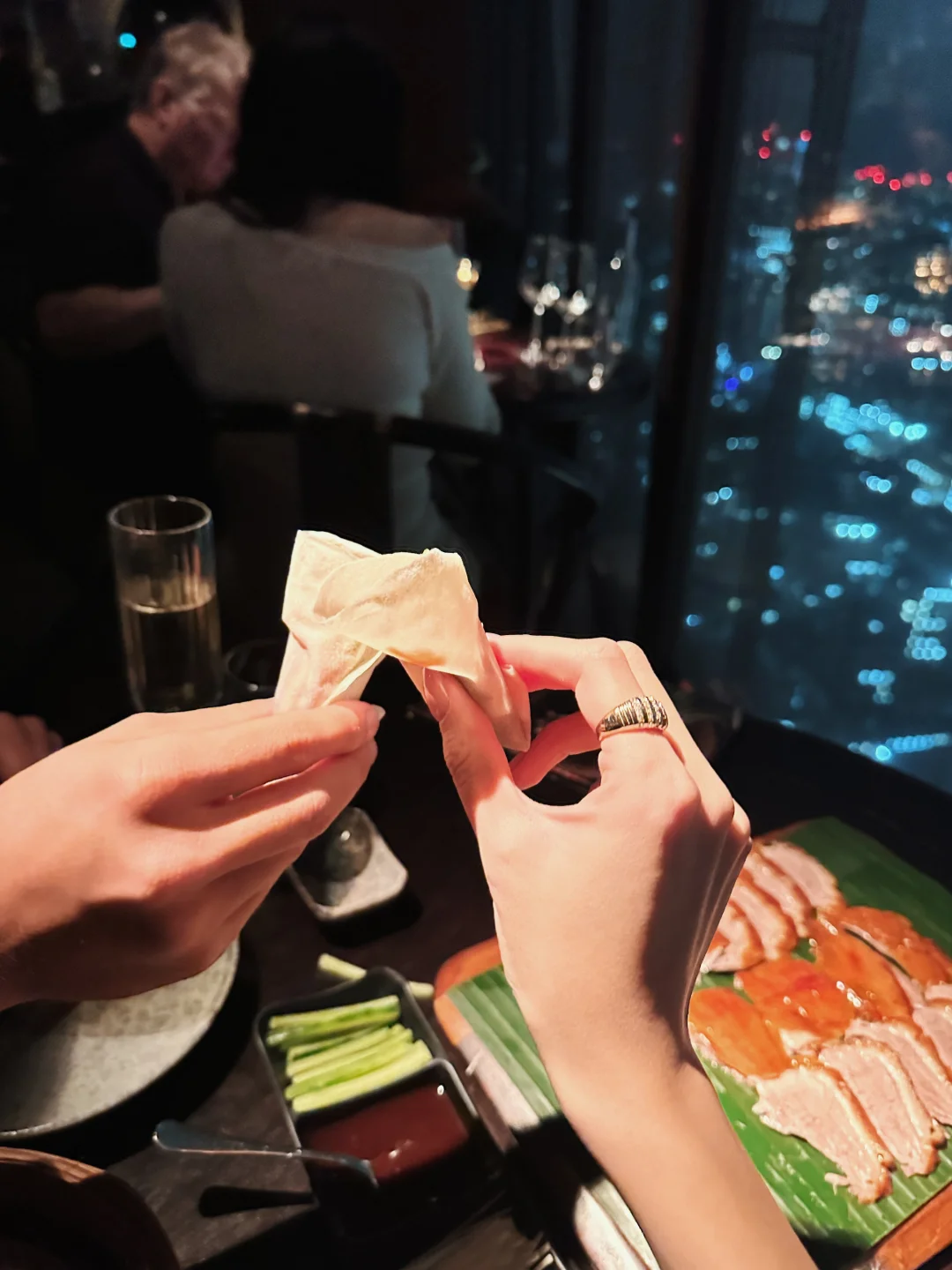 我们选的是window table experience 套餐,烤鸭好吃,川菜也是做出了自己的味道。作为一个南方人,Hutong的辣度刚刚好。不过我更看重的是餐厅的Vibe和服务。至少在这家餐厅,高脚杯和餐食的适配度很高。