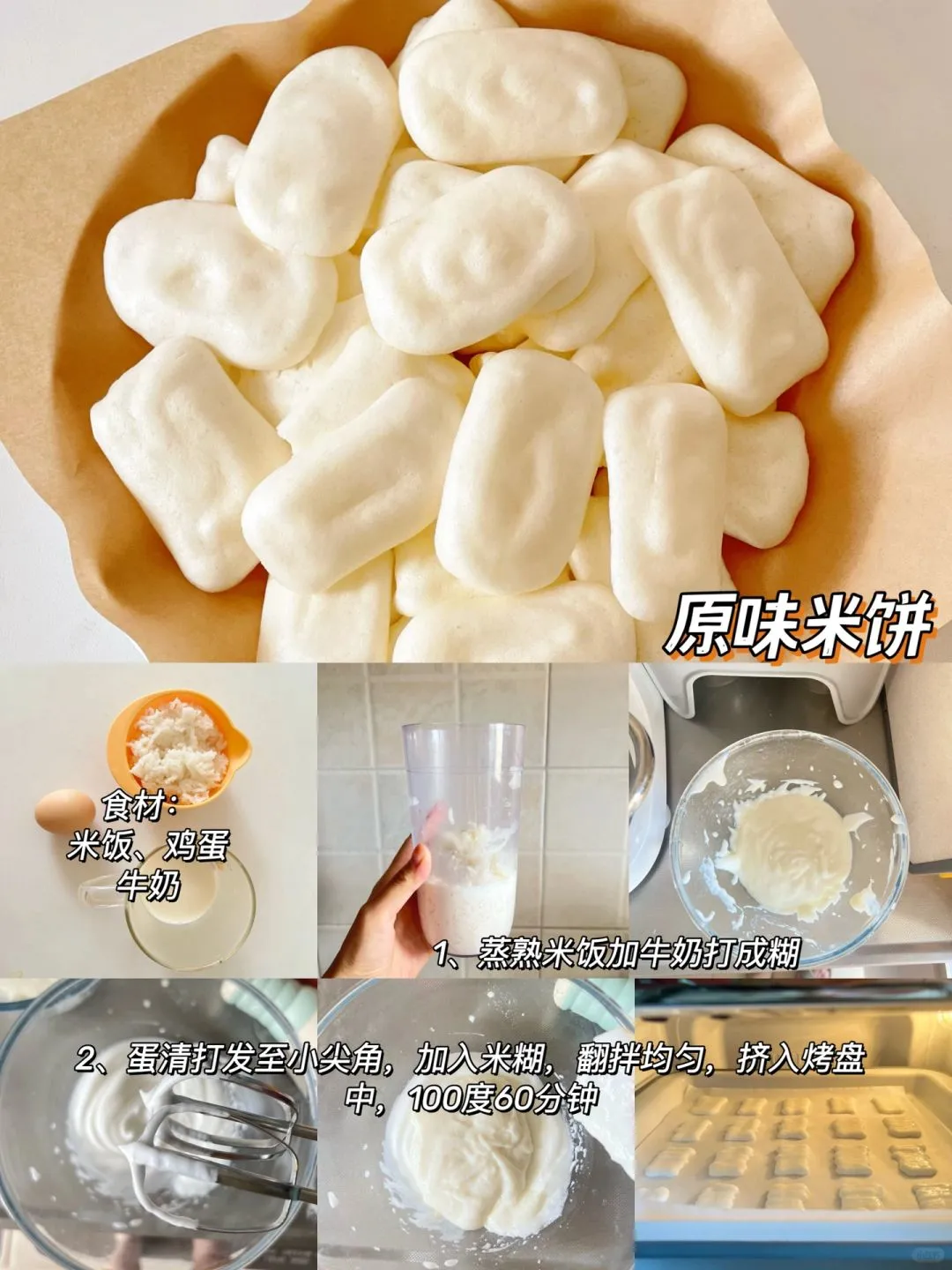 食材:熟米饭160克、配方奶120毫升、蛋清2个