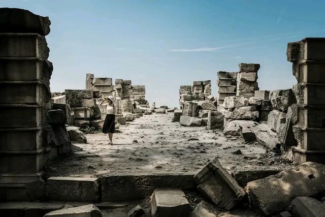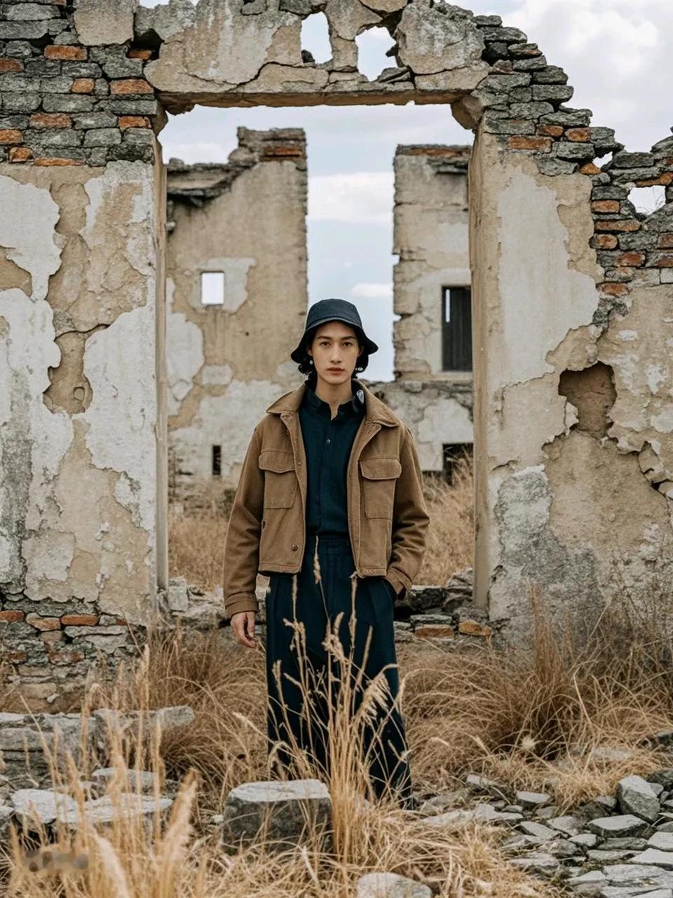 故园荒 断壁残垣枯草长, 破窗蛛网诉沧桑。 昔日人家何处去, 北上广深打工忙。