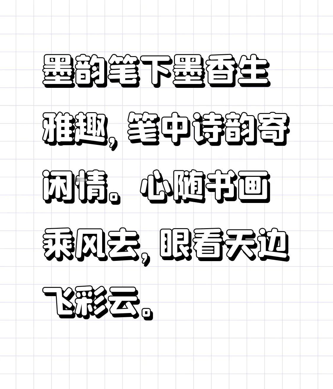 墨韵 笔下墨香生雅趣, 笺中诗韵寄闲情。 心随书画乘风去, 眼看天边飞彩云。
