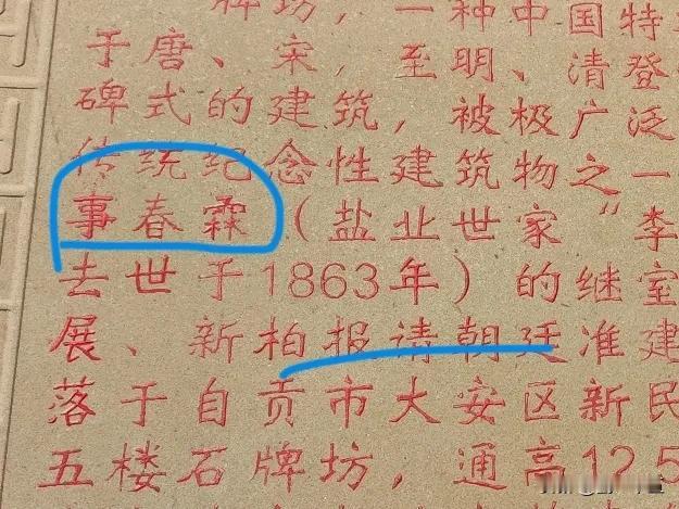 刚刚落成的凉高山张氏牌坊。很漂亮的,美中不足的怕是…… 仔细一看石头上的文字资料,才知道有一段非常的由来。 聪明的网友能发现其在的错误吗? 第一是引用图片,第二图是刚刚立的碑文,李春霖,变成了事春霖。 显然,这就让本地人莫名其妙了。