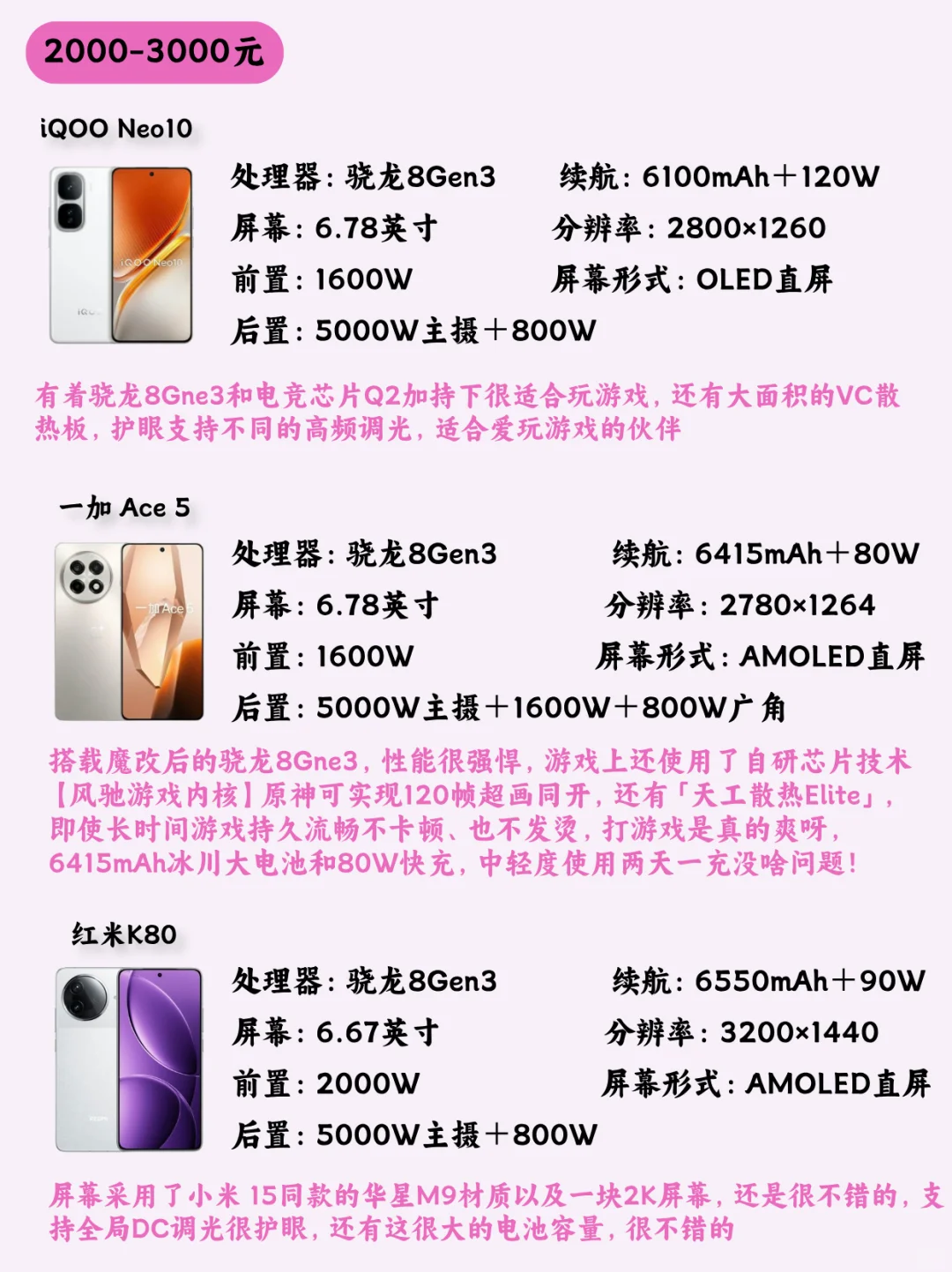 iQOO Neo10、一加 Ace 5、红米 K80
