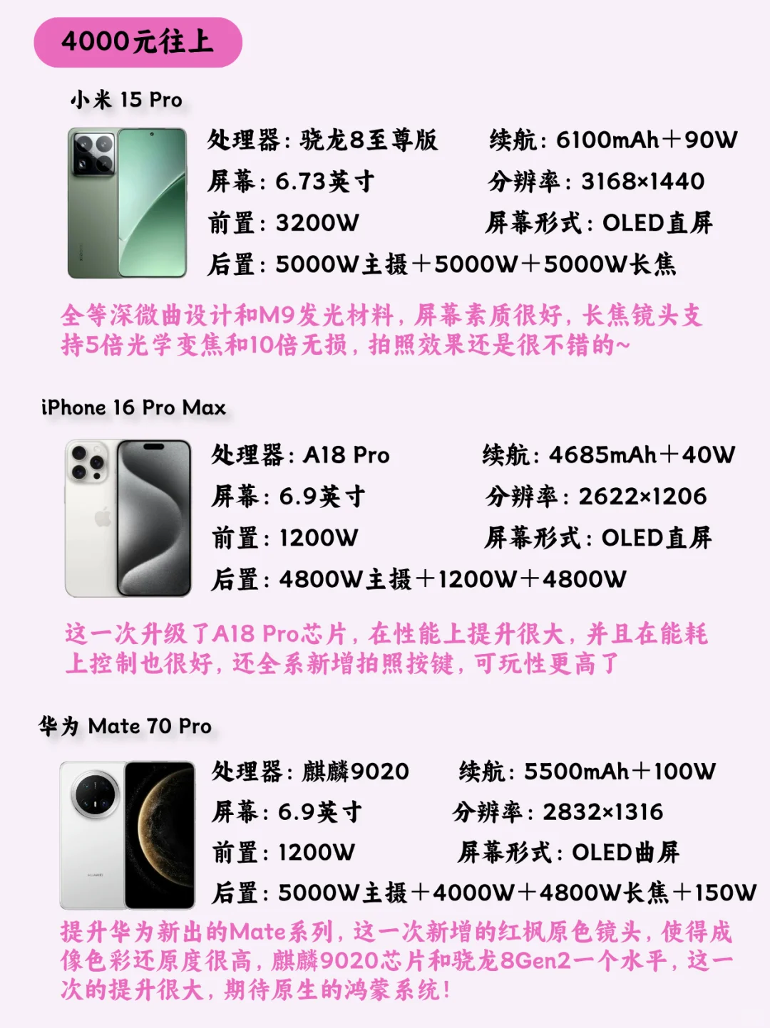 小米 15 Pro、iPhone 16 Pro Max、华为 Mate 70 Pro