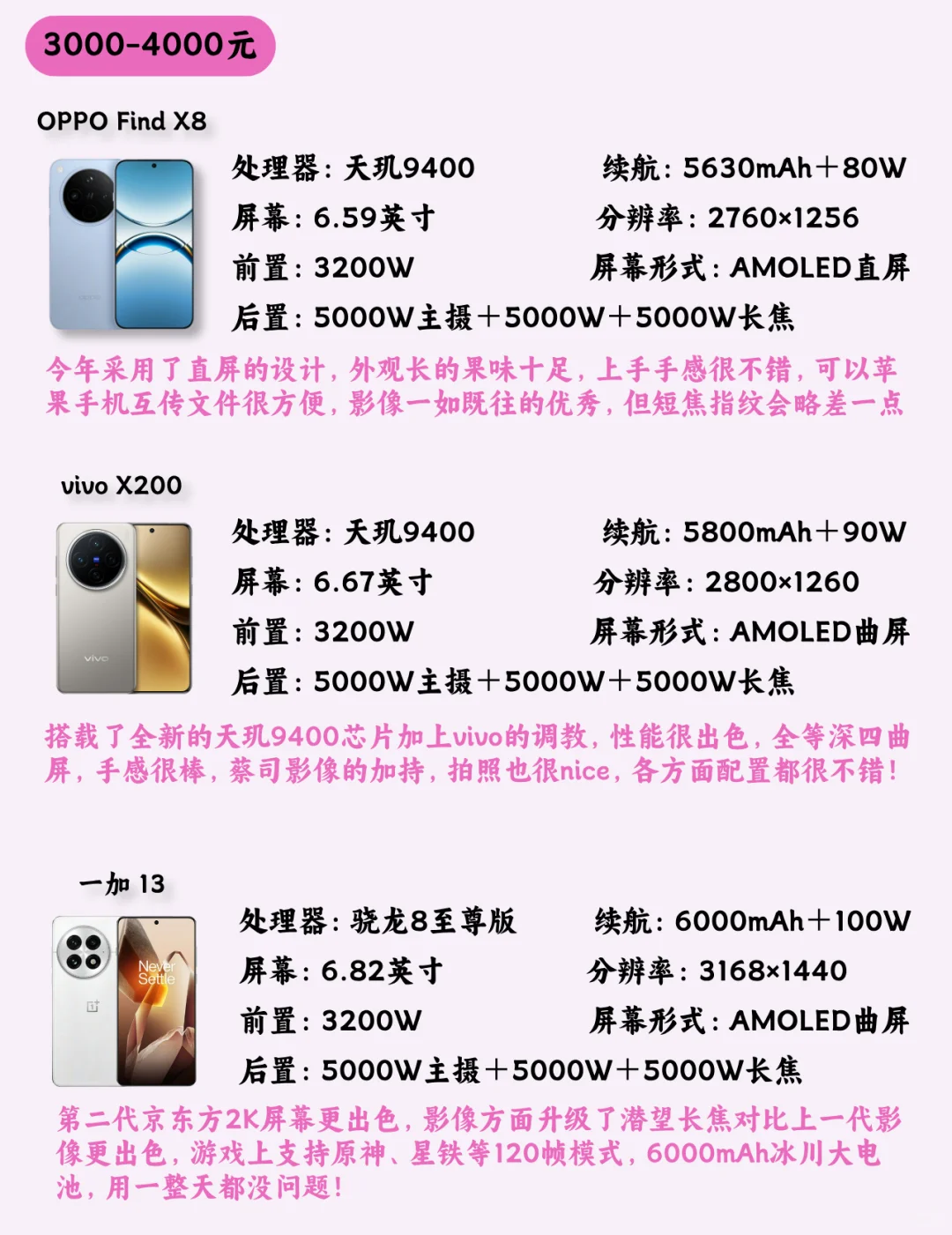 OPPO Find X8、vivo X200、一加 13