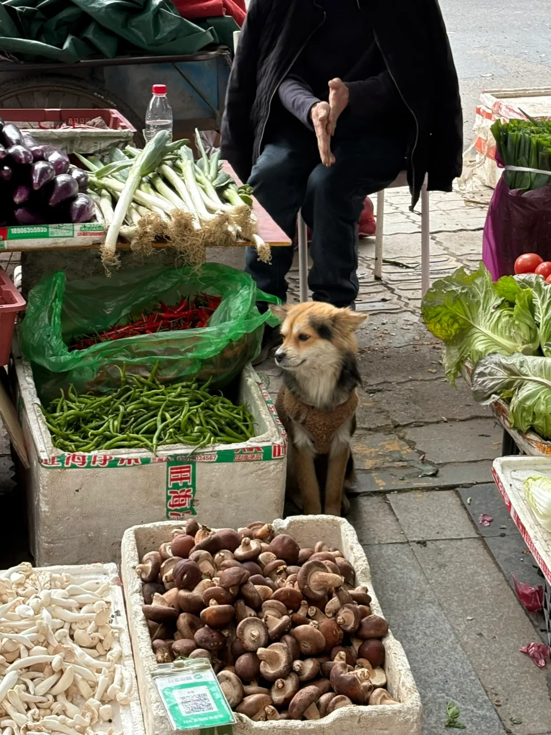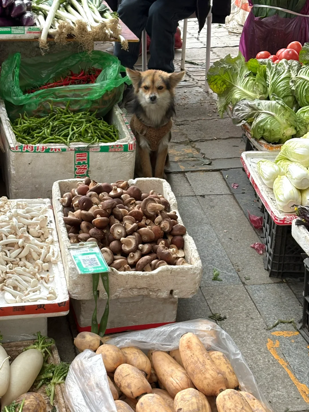 现在快过年了,和小黑熟悉的摊贩都走的差不多了,只剩下卖蔬菜的大爷和几个嬢嬢,但小黑还是每天上街上来转转,看看菜市场里的嬢嬢伯伯们,在和附近的街狗玩一玩。