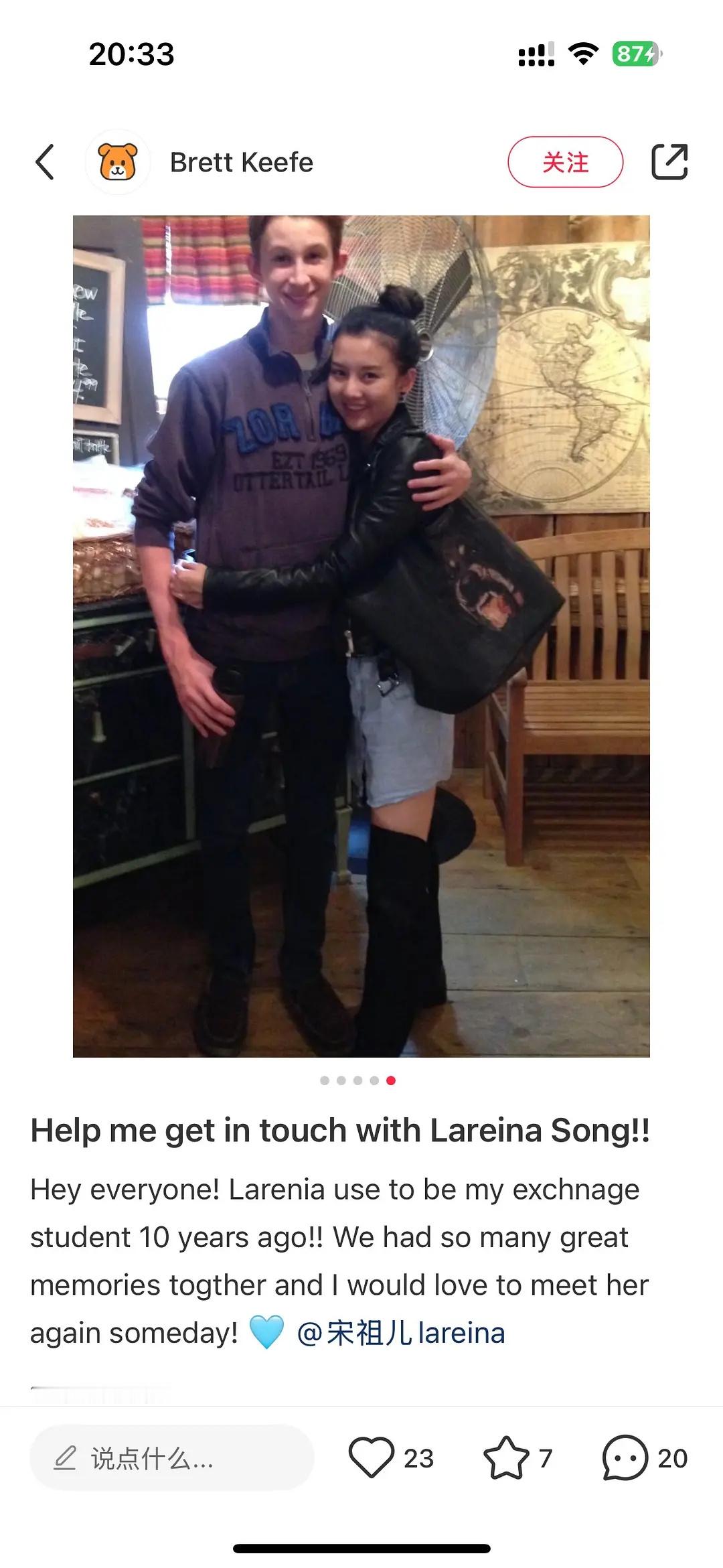 网友喊话宋祖儿好像是当时她去互换的美国家庭