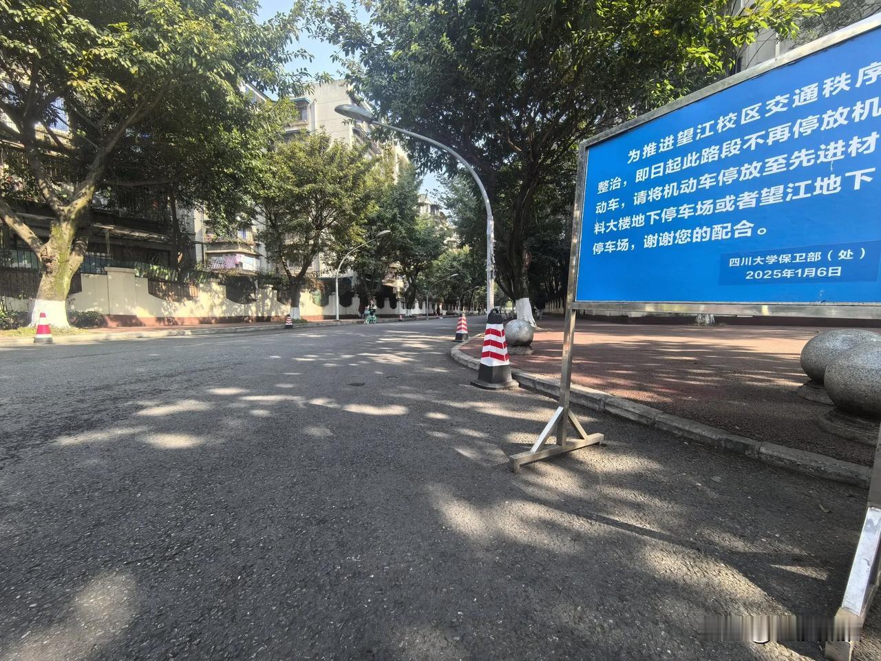 严管路段 禁止停车 四川大学望江校区近日开始校园路段严管,🚫在小区道路两旁停车。新南路边耸立着“全路段禁止停放车辆”的标牌和安民告示。车辆停到停车场,小区路面清爽了。你身边的小区也有这样规定吗?现在进入校园除了出入费,还增加一笔停车费,这车开不起呀。 图文原创:琪琪