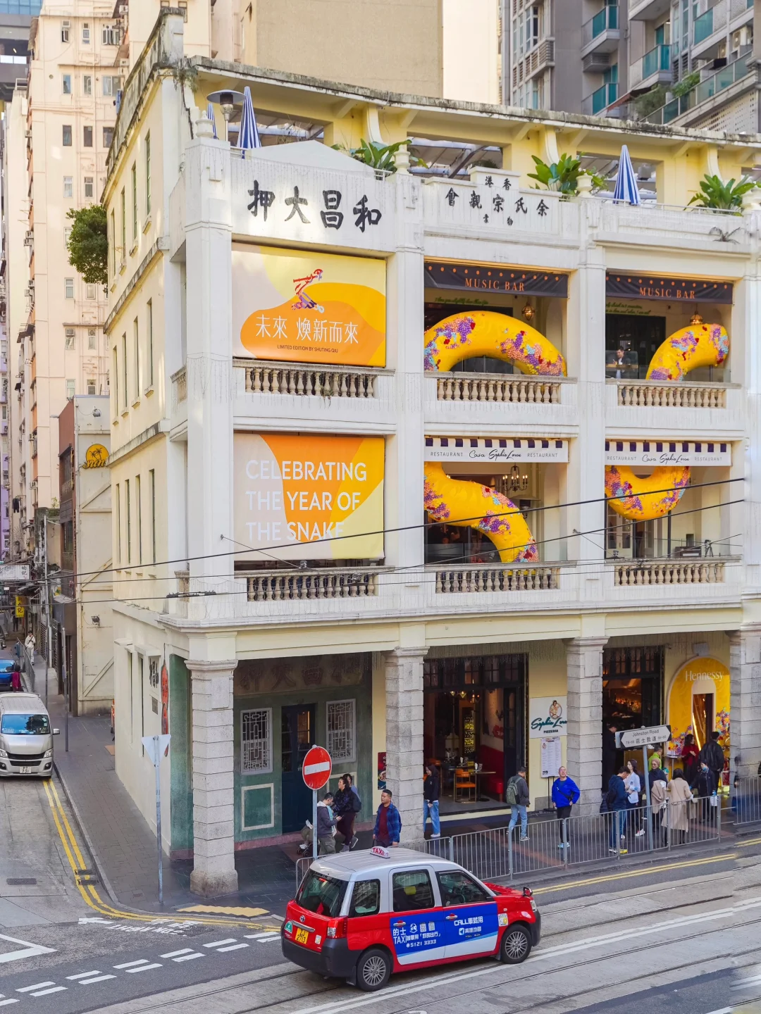 百年历史的唐楼,百年前是一家当铺,现在已经变成了一家餐厅,但外观还能清晰看到“和昌大押”字样,这里还能拍到叮叮车同框。