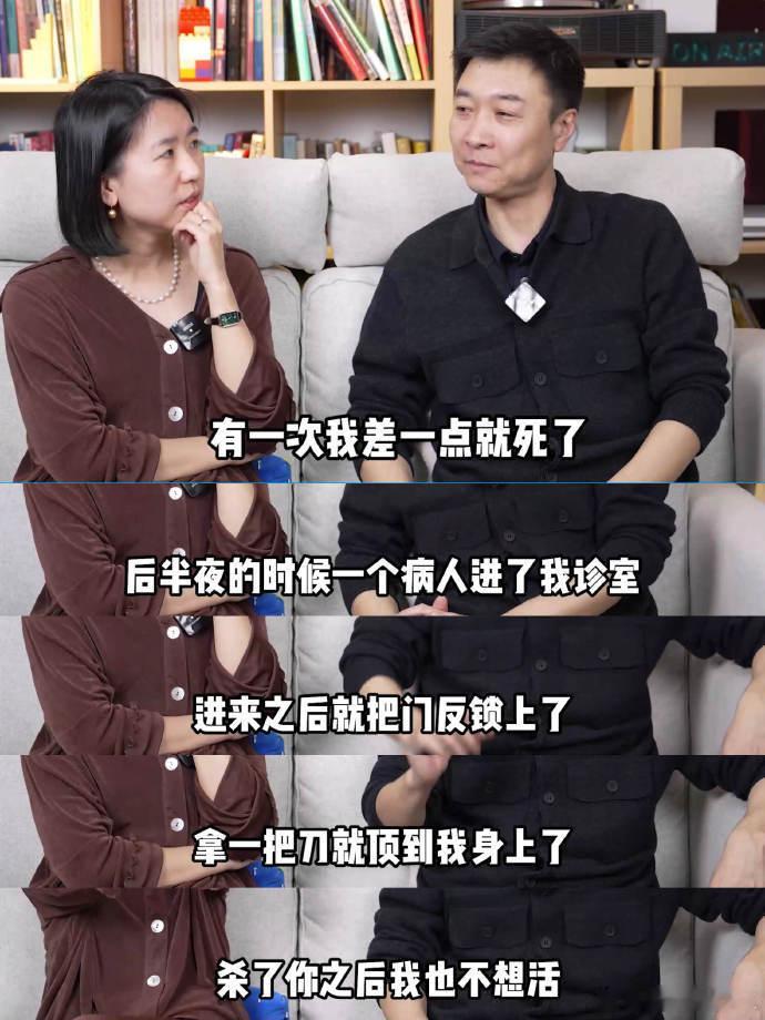 谁能想到急诊医生在急救工作之外,还面临着巨大的危险。巍子医生谈坐班时的惊险经历,半夜病人拿着刀来到急诊室,将门反锁,扬言要拉个垫背的。在巨大的心理恐慌下,巍子强忍慌乱,和病人谈判。