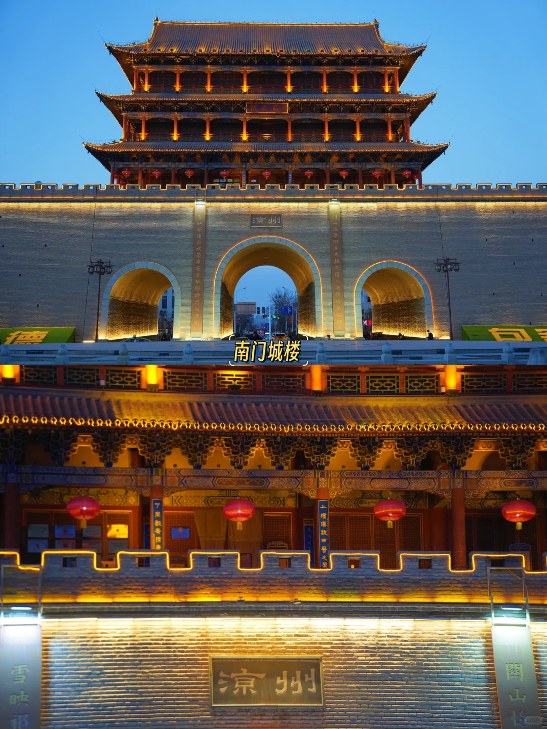 ✅南城门楼(🆓)——明清街旁边,吃完饭可以看夜景,牌匾写有“凉州”