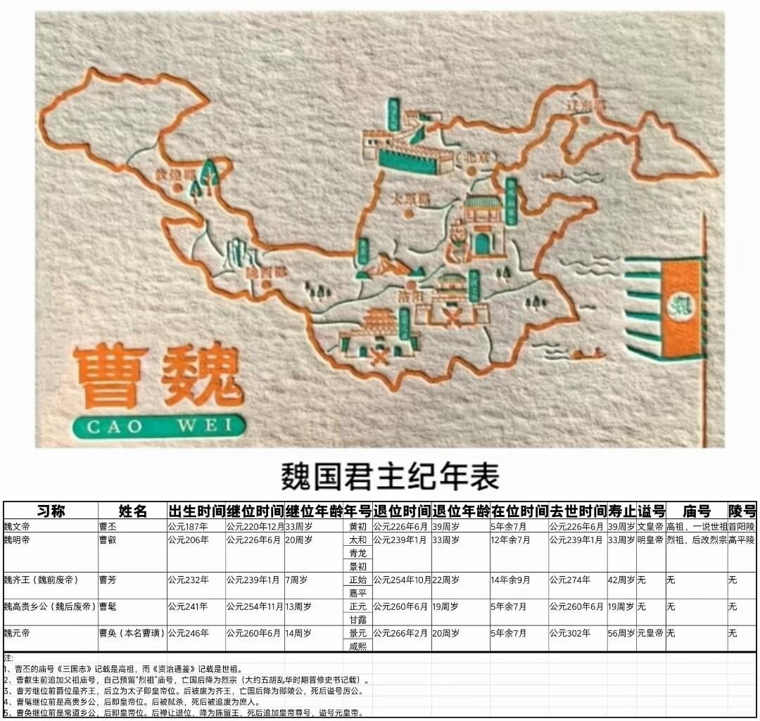三国时期君主纪年表。曹魏东吴