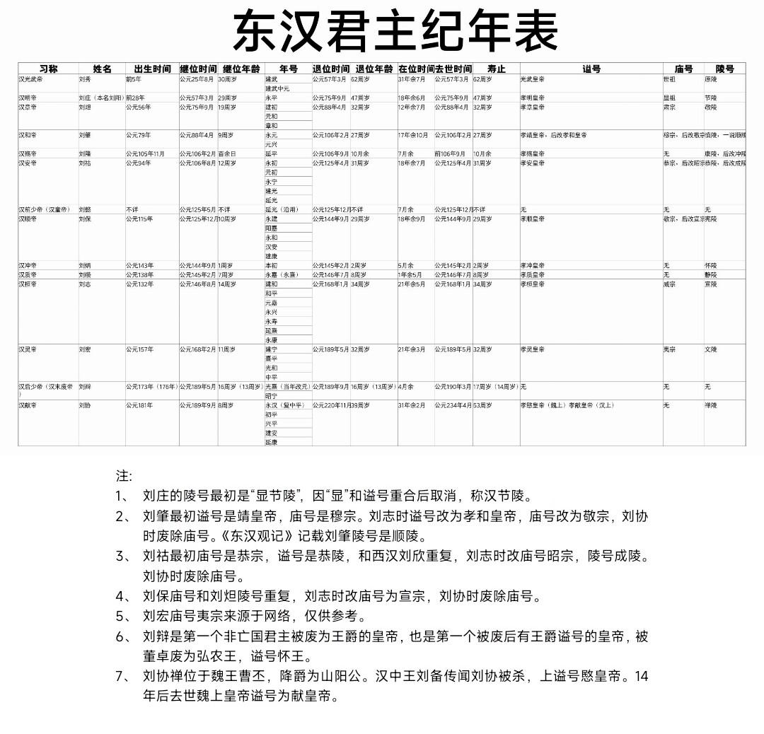 汉朝君主纪年表(下 东汉时期)东汉