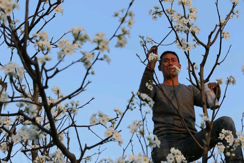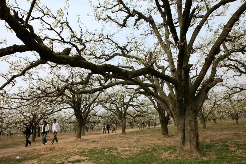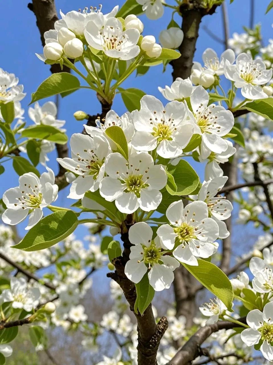 梨园春雪 东君挽柳换新妆, 几树梨花竞海棠。 近水伊人扶小朵, 笑容可掬细品香。
