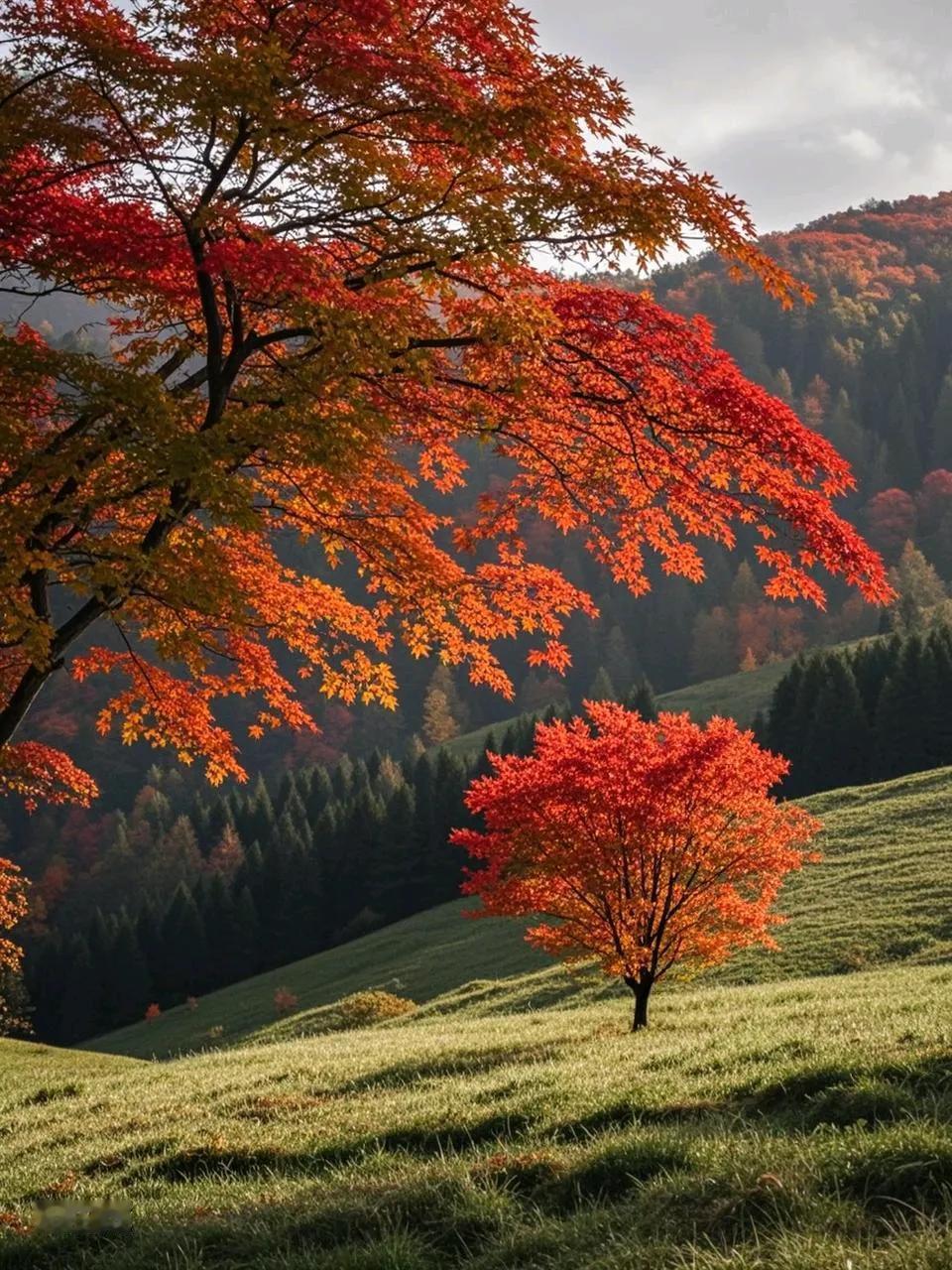 东篱把酒黄昏后, 南浦题诗白露秋。 雁影渐消云外去, 枫叶经霜红满山头,景色甚美